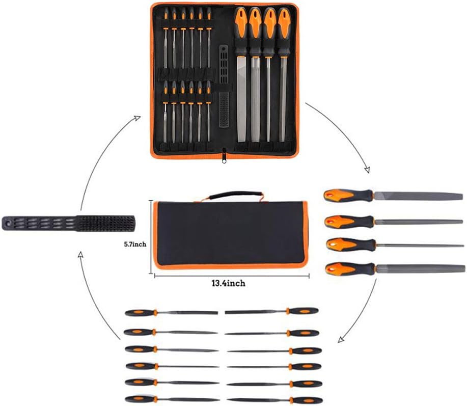 17Pcs File Tool Set with Carry Case,Premium Grade T12 Drop Forged Alloy Steel, Precision Flat/Triangle/Half-round/Round Large File and 12pcs Needle Files/1 brush