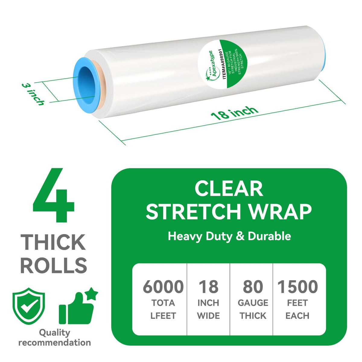 - [Heavy-Duty Performance] - Tackle all your packing and moving tasks with ease using this 4-roll, total 6000-foot moving wrapping plastic roll. Whether bundling household items or securing pallets, move confidently knowing your belongings are fully protected.