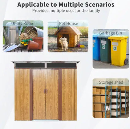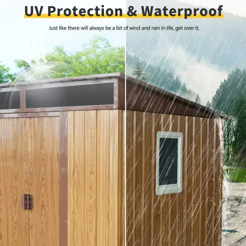 Product Name:6ft x 5ft Outdoor Metal Storage Shed with Window and Transparent plate for Garden, Lawn (Coffee)