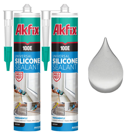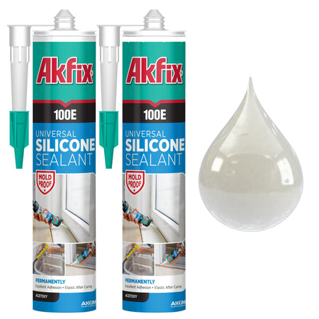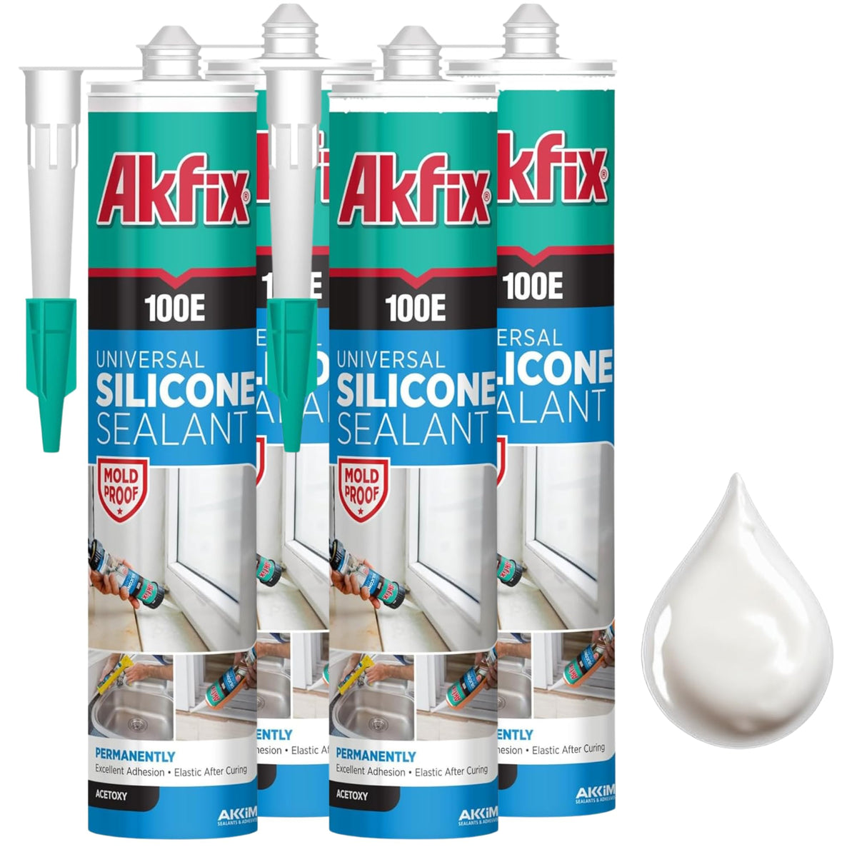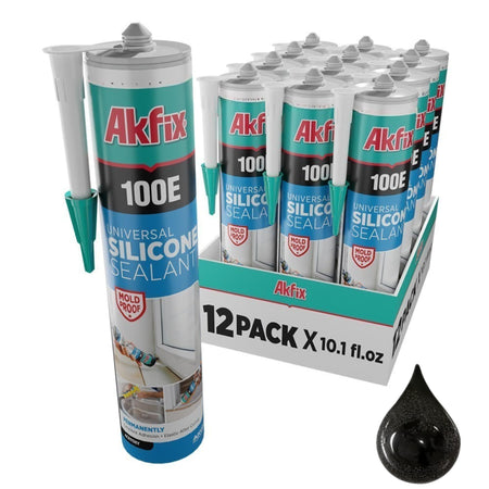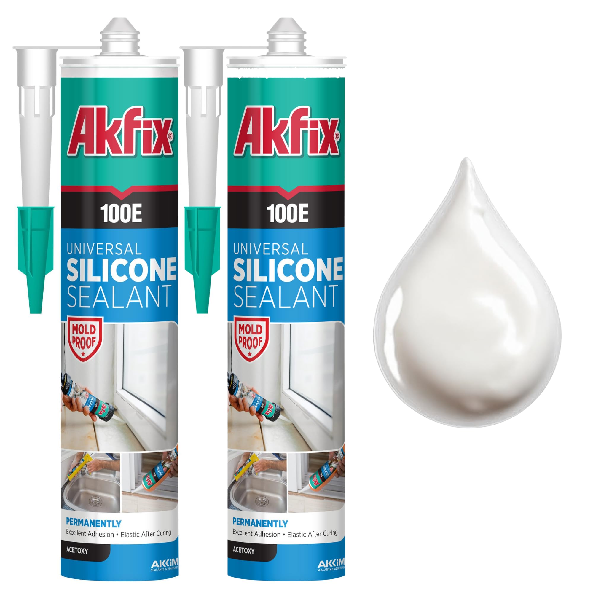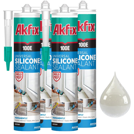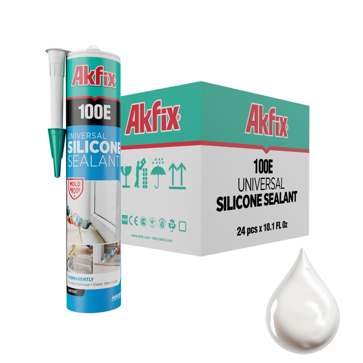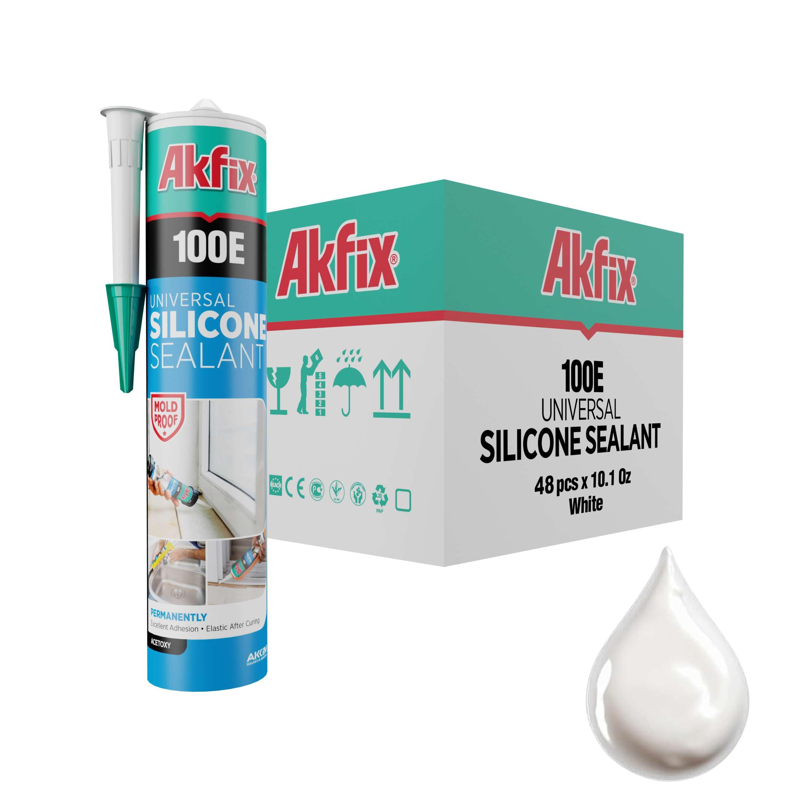 Akfix 100E RTV Clear Silicone Caulk (48x10.1 fl.oz.) - 100% Waterproof Silicone Sealant for Kitchen and Bathroom, Shower, Toilet, Sink, Window and Door, No Yellowing | Clear, 48 Pack