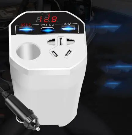 This high-power automotive converter and socket charger is designed to deliver 200W of reliable power for your car accessories and devices. It features multiple sockets for charging smartphones, tablets, and other electronics. Built with durable, flame-retardant ABS material, it ensures safety while in use. Ideal for long drives, this converter is compatible with both 12V and 24V systems, offering versatility for various vehicles. Stay powered on the road with this multifunctional car charger.
