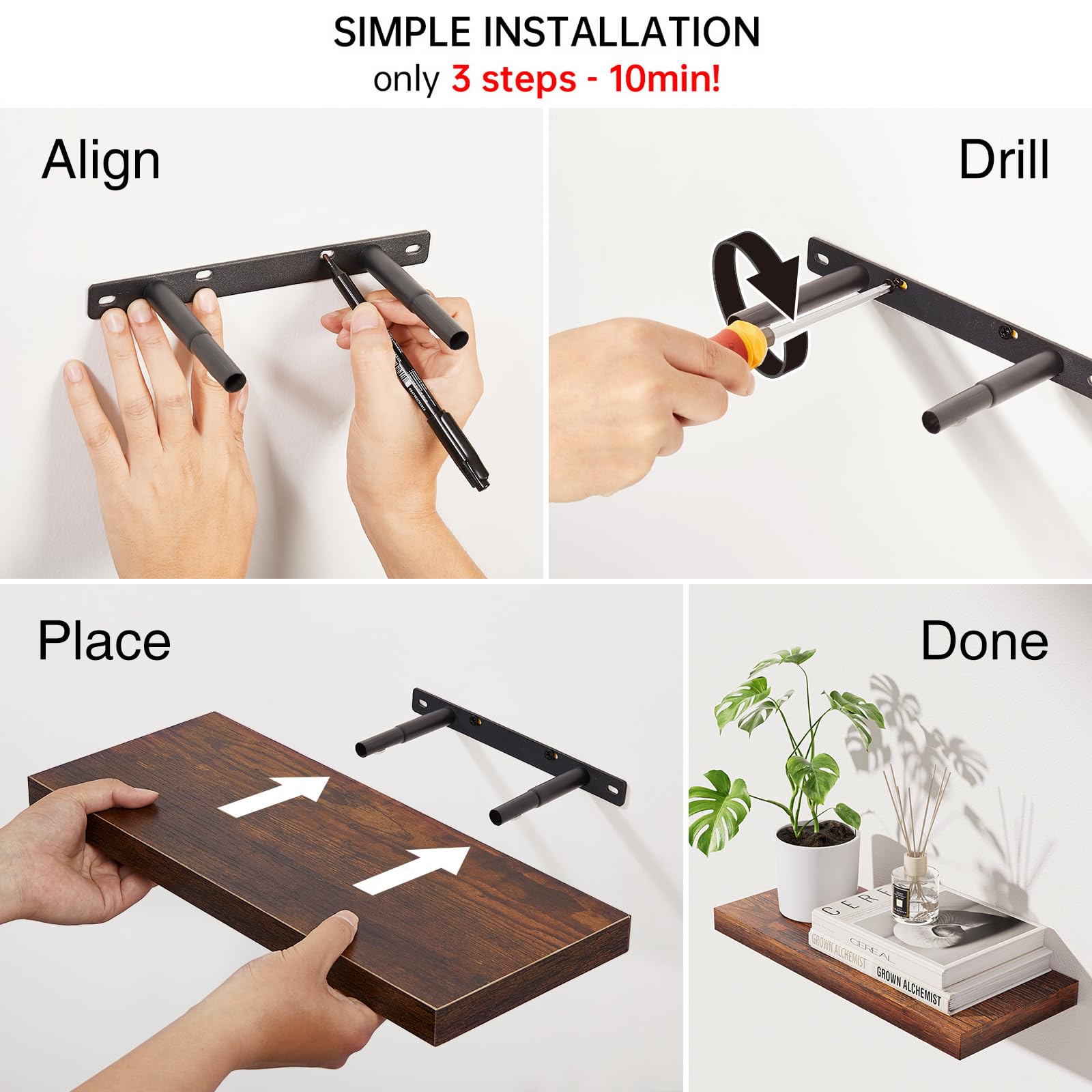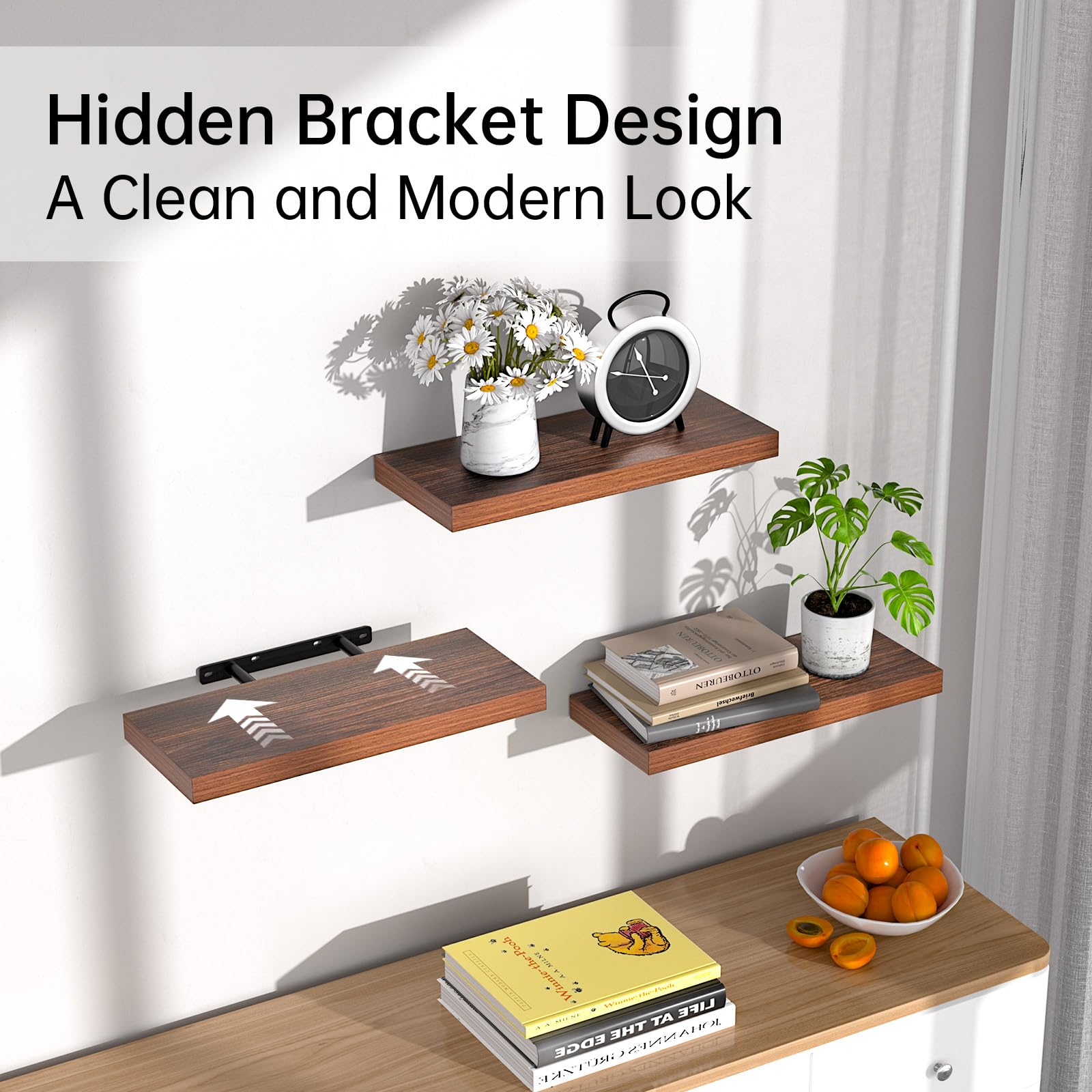 - ๐๐จ๐๐๐ซ๐ง & ๐๐ข๐ง๐ข๐ฆ๐๐ฅ๐ข๐ฌ๐ญ ๐๐ญ๐ฒ๐ฅ๐ โ Featuring clean lines and a rustic finish, these wall-mounted shelves ๐๐๐ ๐ ๐ฆ๐จ๐๐๐ซ๐ง ๐ญ๐จ๐ฎ๐๐ก to any room, from cozy bedrooms to contemporary living spaces