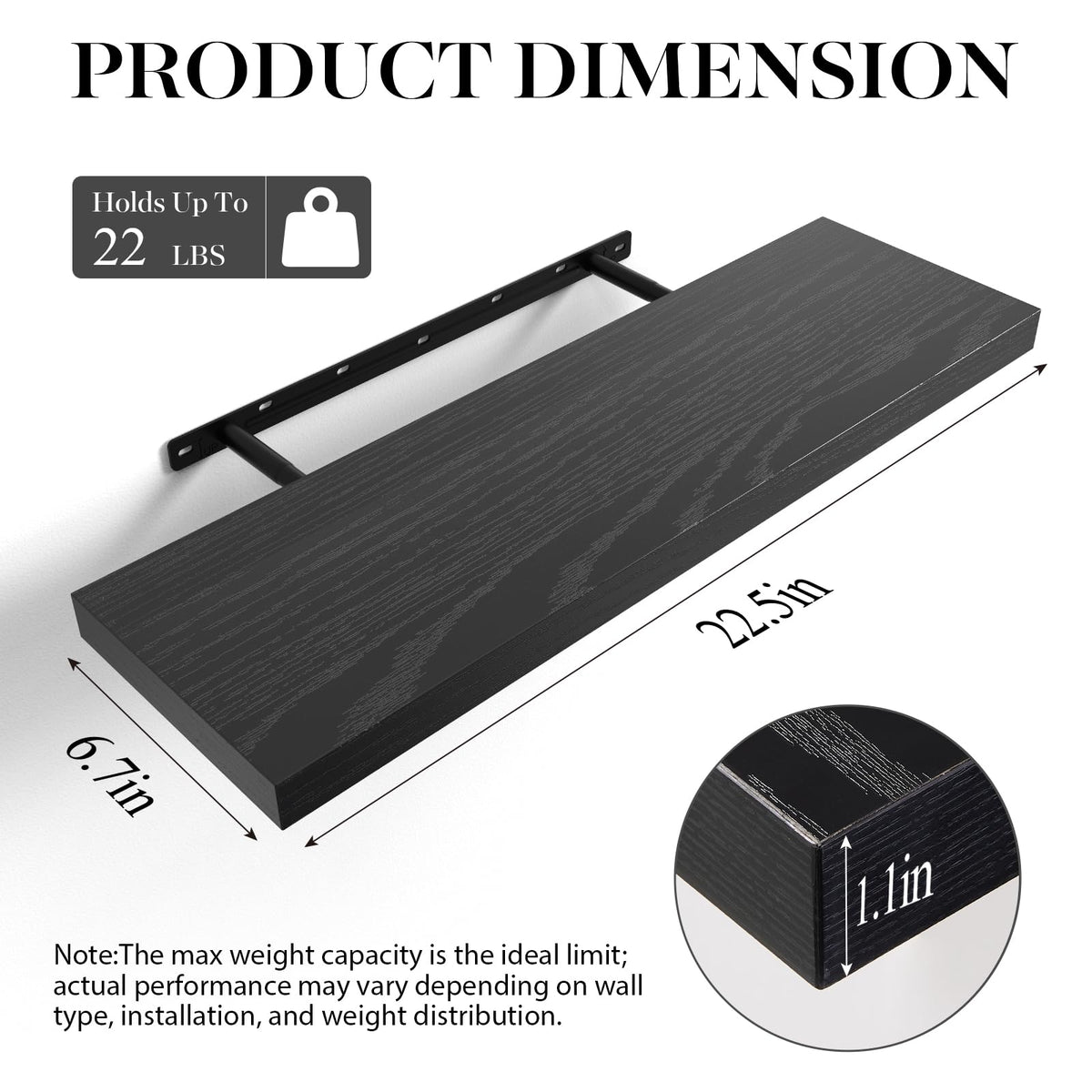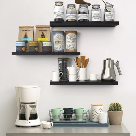 BAYKA Floating Shelves for Wall, Wall Mounted Rustic Wood Shelves for Bathroom, Bedroom, Living Room, Kitchen, Hanging Shelf for Books/Storage/Room Decor with 22lbs Capacity (Black, Set of 3, 15.7in)
