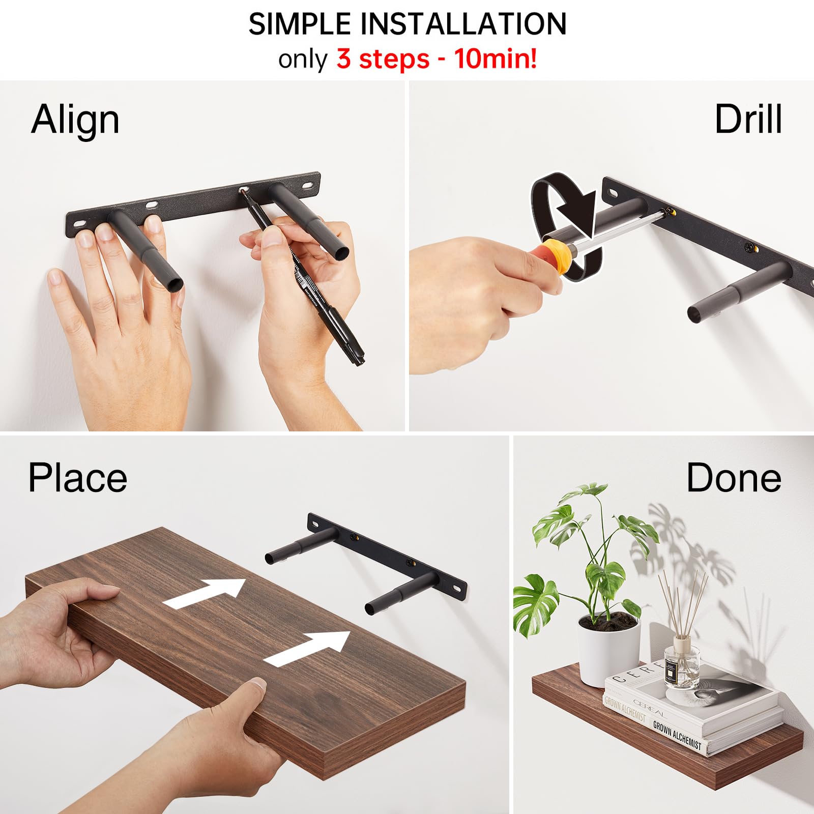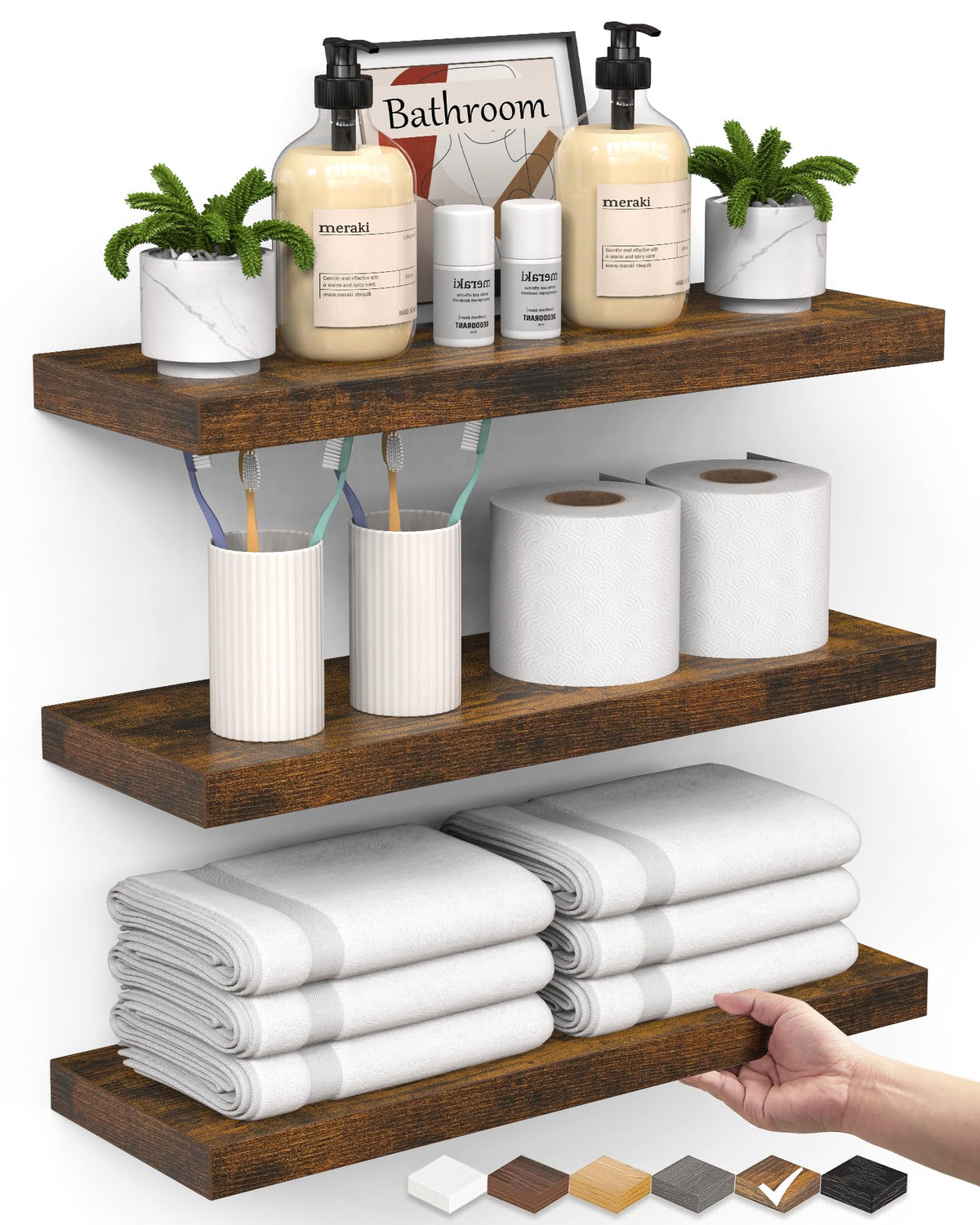 - ๐๐ญ๐ซ๐จ๐ง๐ ๐๐จ๐๐ ๐๐๐ฉ๐๐๐ข๐ญ๐ฒ โ Made from ๐๐ฎ๐ซ๐๐๐ฅ๐ ๐๐ง๐ ๐ข๐ง๐๐๐ซ๐๐ ๐ฐ๐จ๐จ๐ and reinforced with sturdy brackets, each shelf ๐ฌ๐ฎ๐ฉ๐ฉ๐จ๐ซ๐ญ๐ฌ ๐ฎ๐ฉ ๐ญ๐จ ๐๐ ๐ฅ๐๐ฌ, making them ideal for books, plants, toiletries, or decor