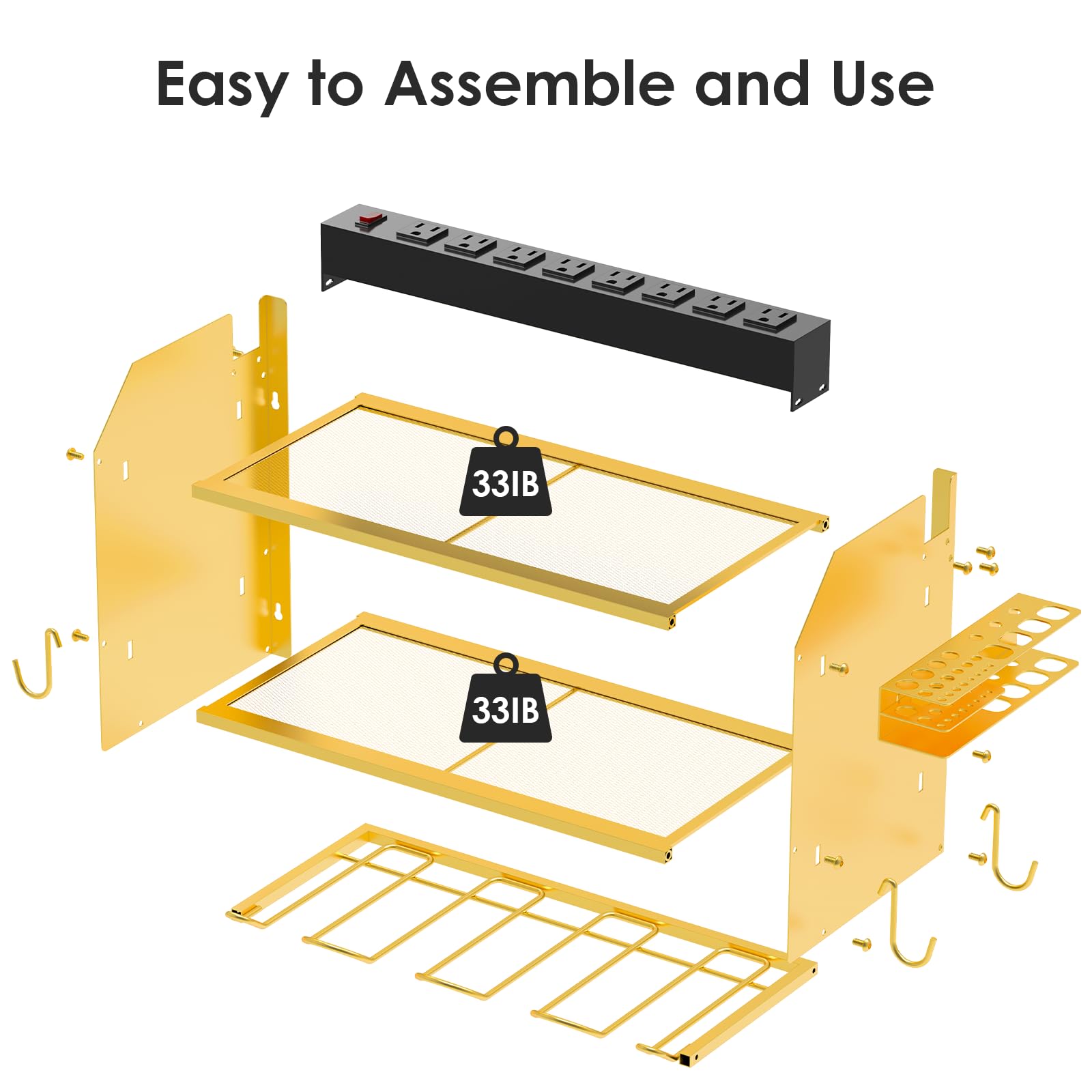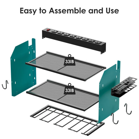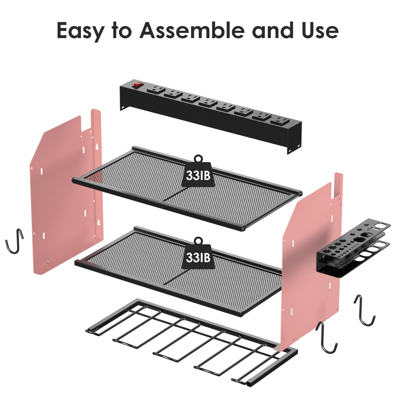- Easy to assemble and mount on a peg board, If you need more storage space, you can connect the two shelves (or more) by screws. Each layer of the grid can support a maximum weight of 33IB. Made from heavy gauge steel. Amazing christmas or father's day gift for men.
