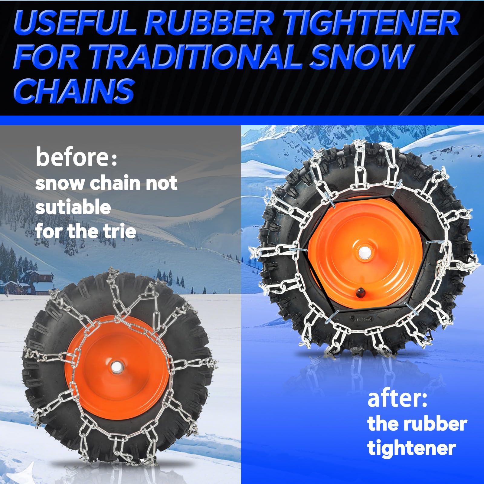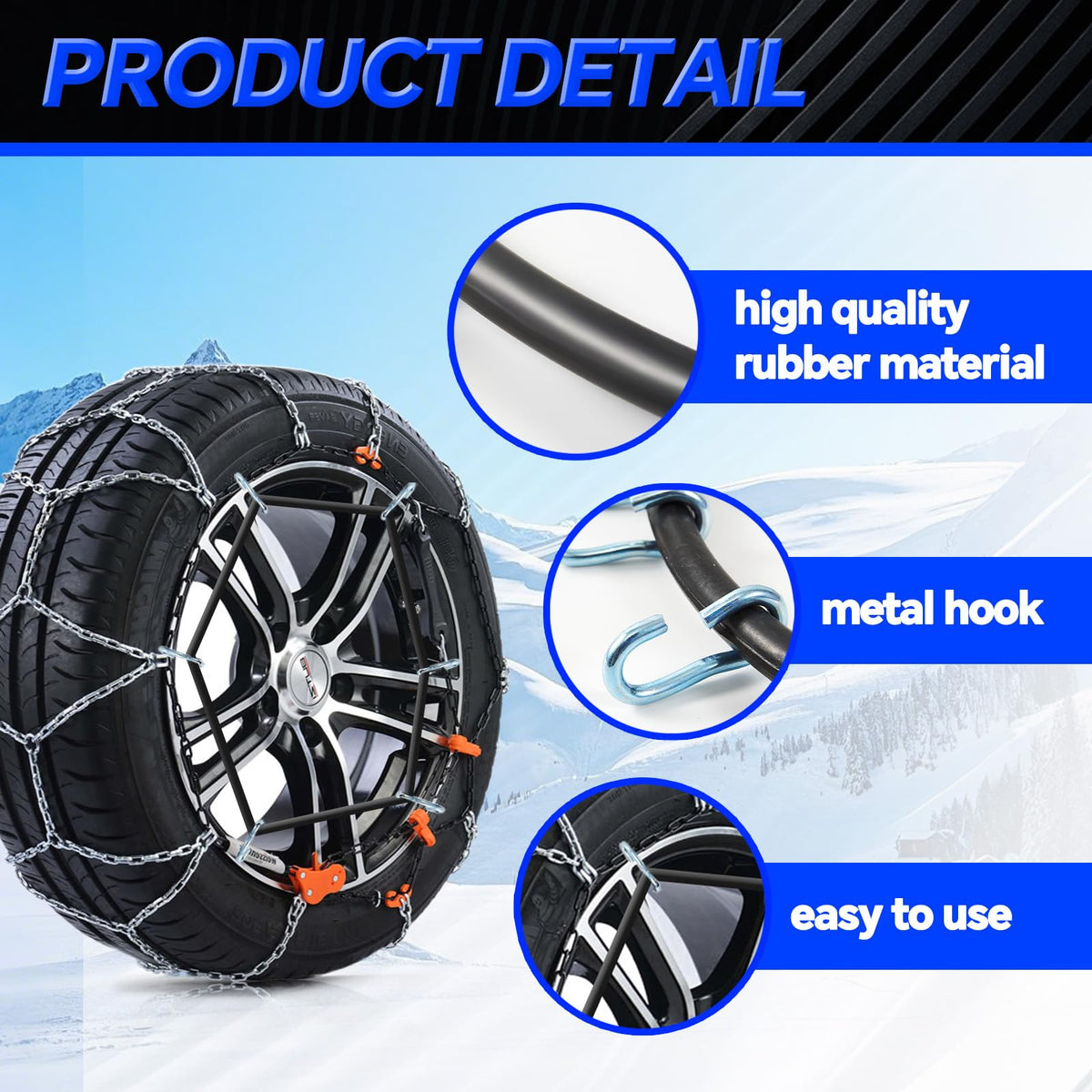 - 【Not Get Tangled Up】The structure of tire chain is carefully designed to prevent tangling. This makes it easier to use and saves time and energy.