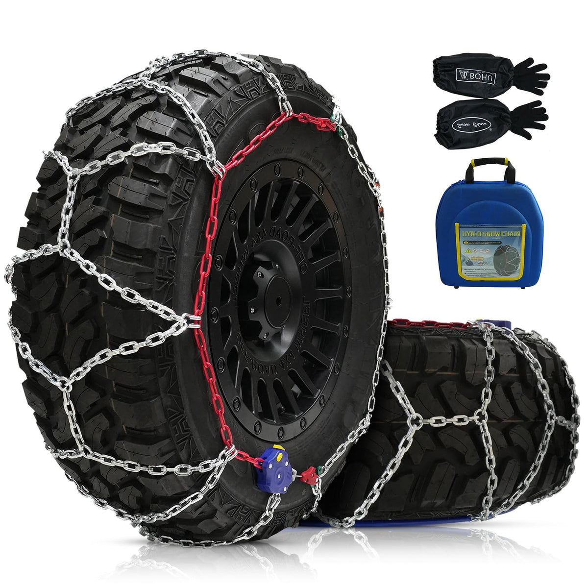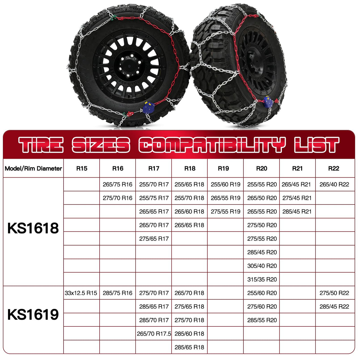 DEDC Tire Chains for Pickup Trucks, Anti Skid Snow Chains for Off Road SUV, Tire Traction Winter Ice Iced Cold Road, 1 Min Quick Fit 255 265 275 285 - Set of 2(KS1618)