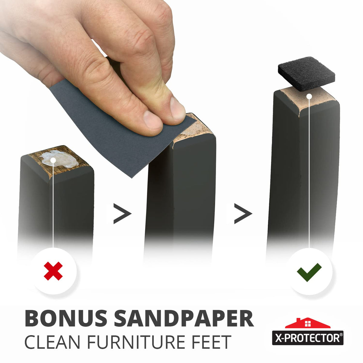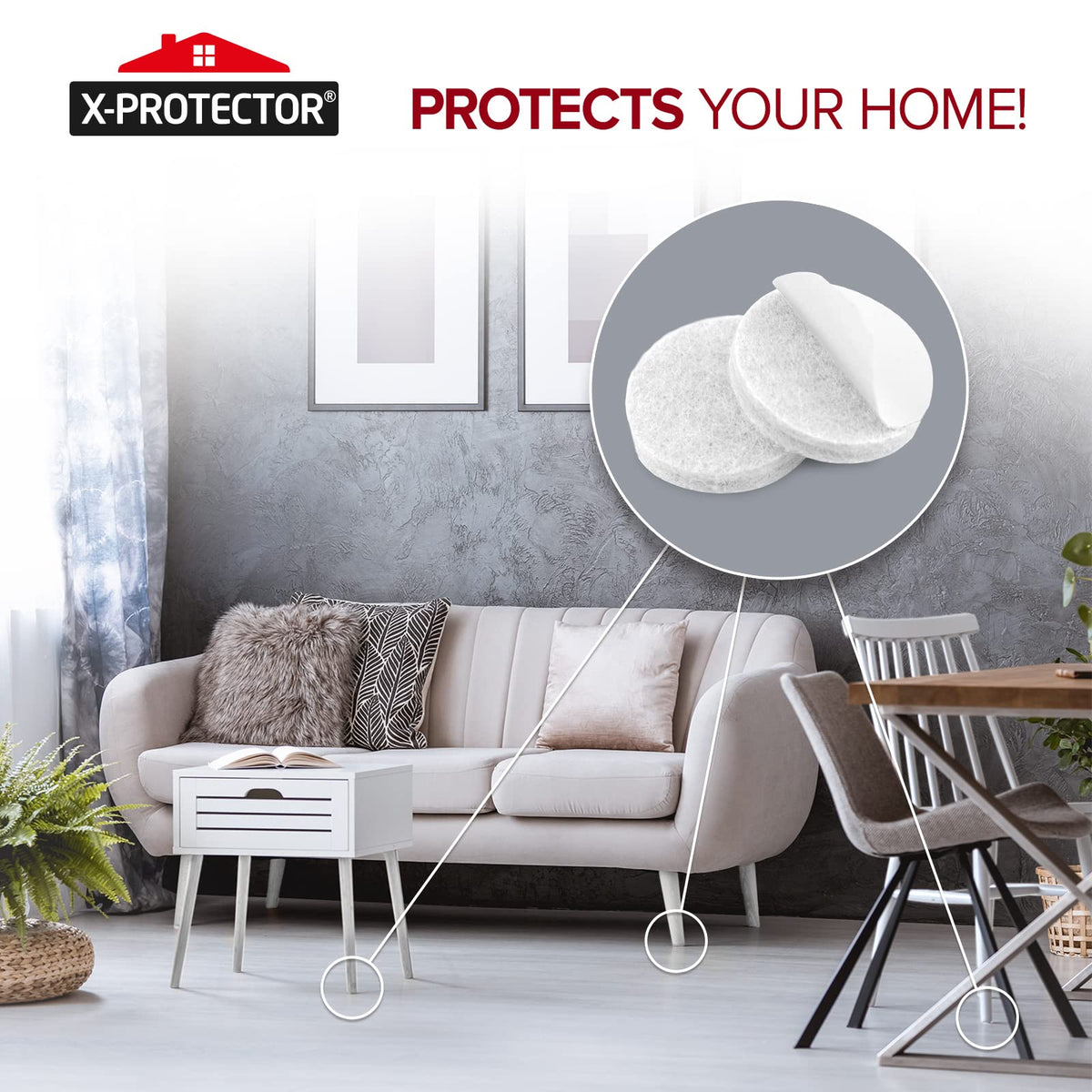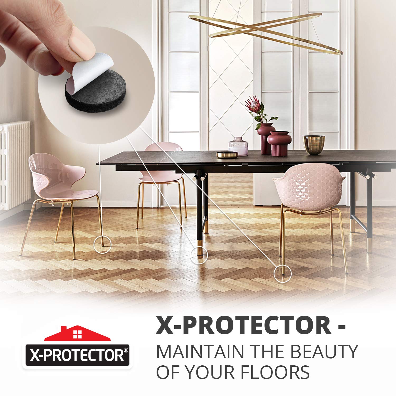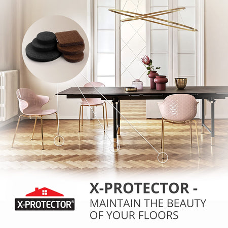 - ✌ X-PROTECTOR FURNITURE FELT PADS – best protection for Your wooden, laminate or tiled floors. Our furniture coasters create strong shields between floor and furniture, desks & tabletops, which carefully protect surfaces from scratches and scuffs.