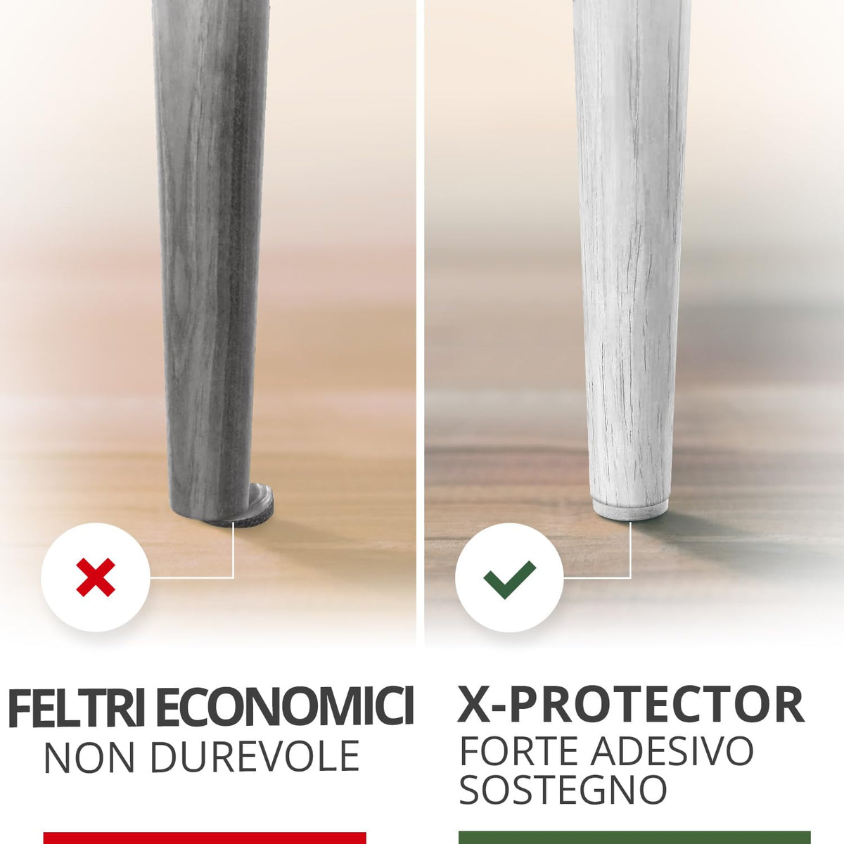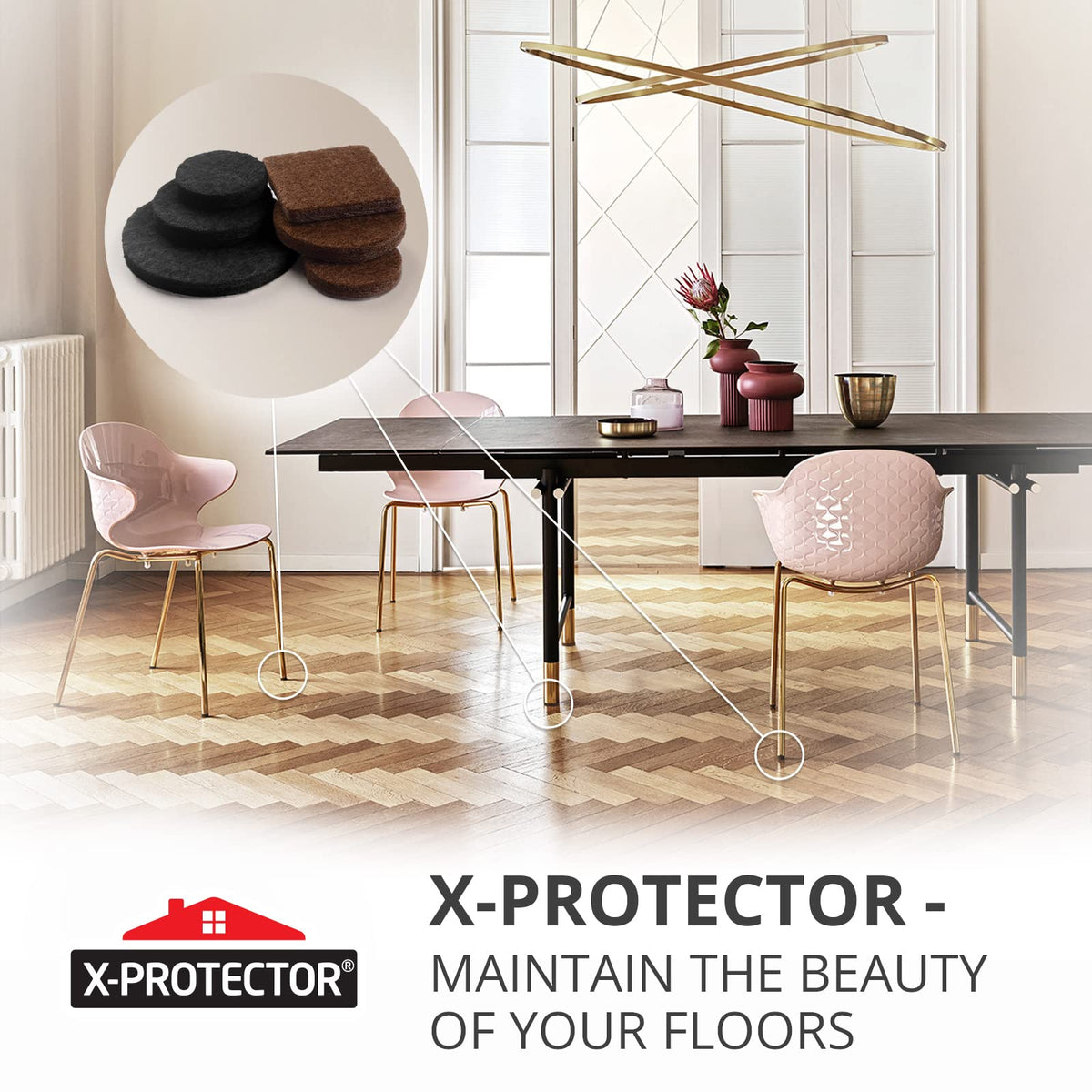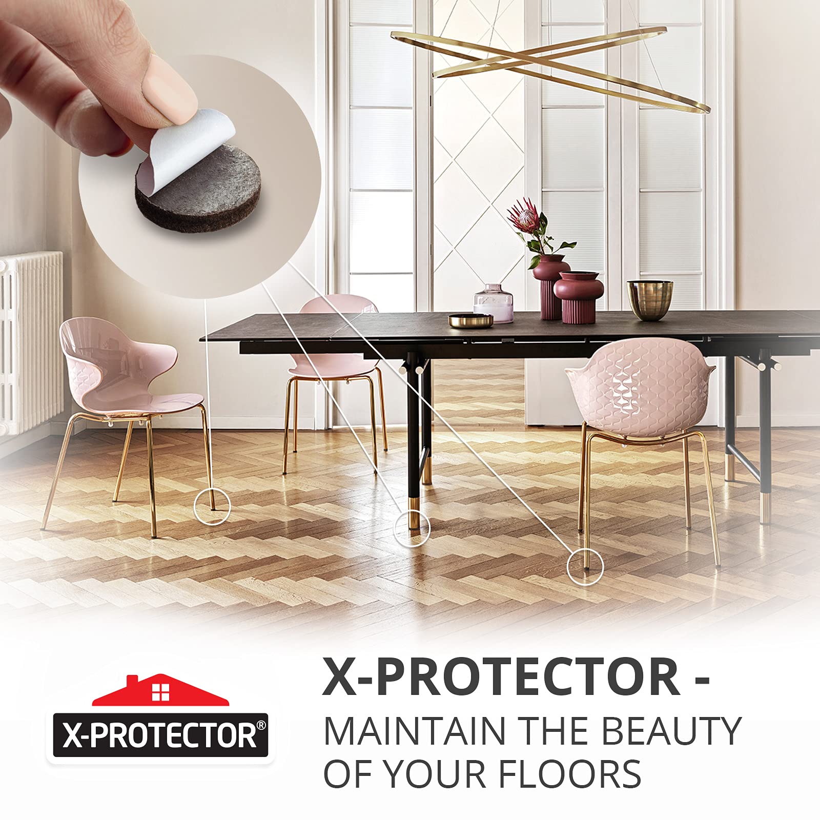- ✌ X-PROTECTOR FURNITURE FELT PADS – best protection for Your wooden, laminate or tiled floors. Our furniture coasters create strong shields between floor and furniture, desks & tabletops, which carefully protect surfaces from scratches and scuffs.