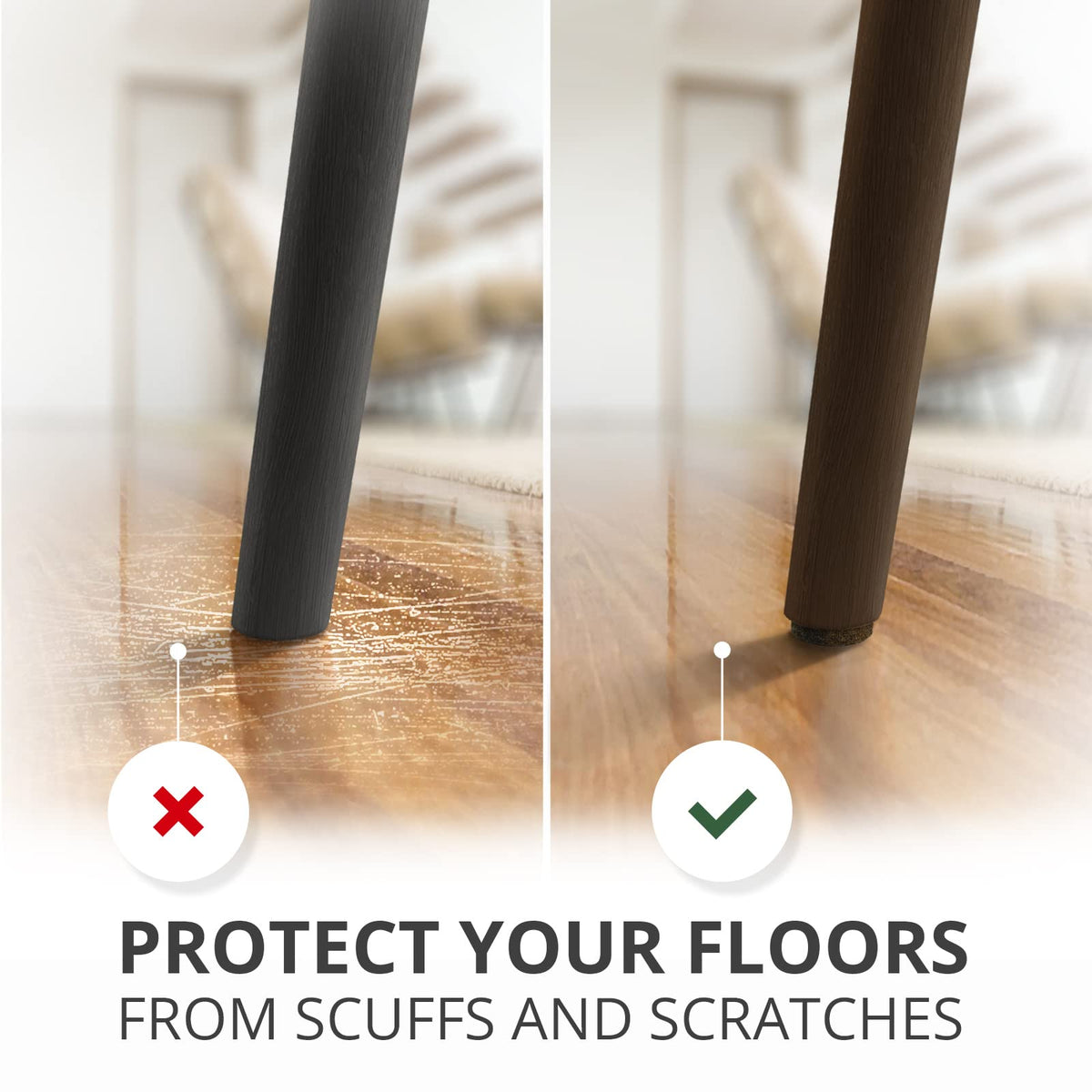 - ✌ X-PROTECTOR SUITABLE FOR ANY HOME FURNITURE - our wood floor protectors for furniture are perfect for any chair legs, furniture feet and home furniture, electrical and other items. It’s very easy to stick our felt floor protectors to Your home furniture and items.