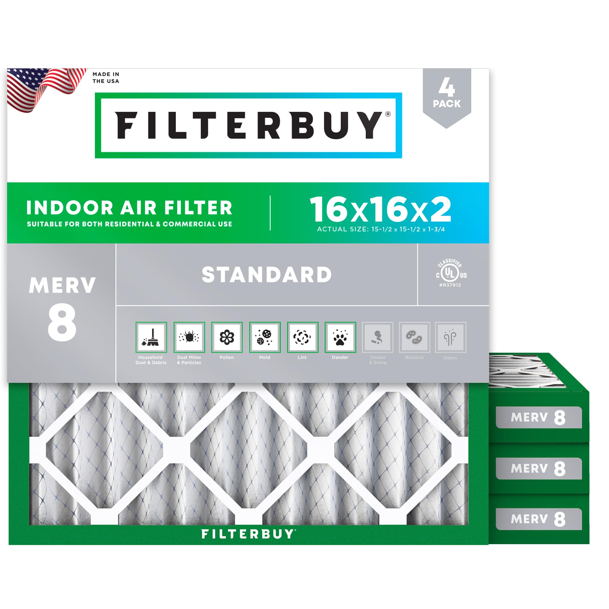 Filterbuy 16x25x1 Air Filter MERV 8 (MPR 700) Dust Defense Replacement (4-Pack), Electrostatic Pleated HVAC AC Furnace Filters, Made in USA (Actual Size: 15.50 x 24.50 x 0.75)
