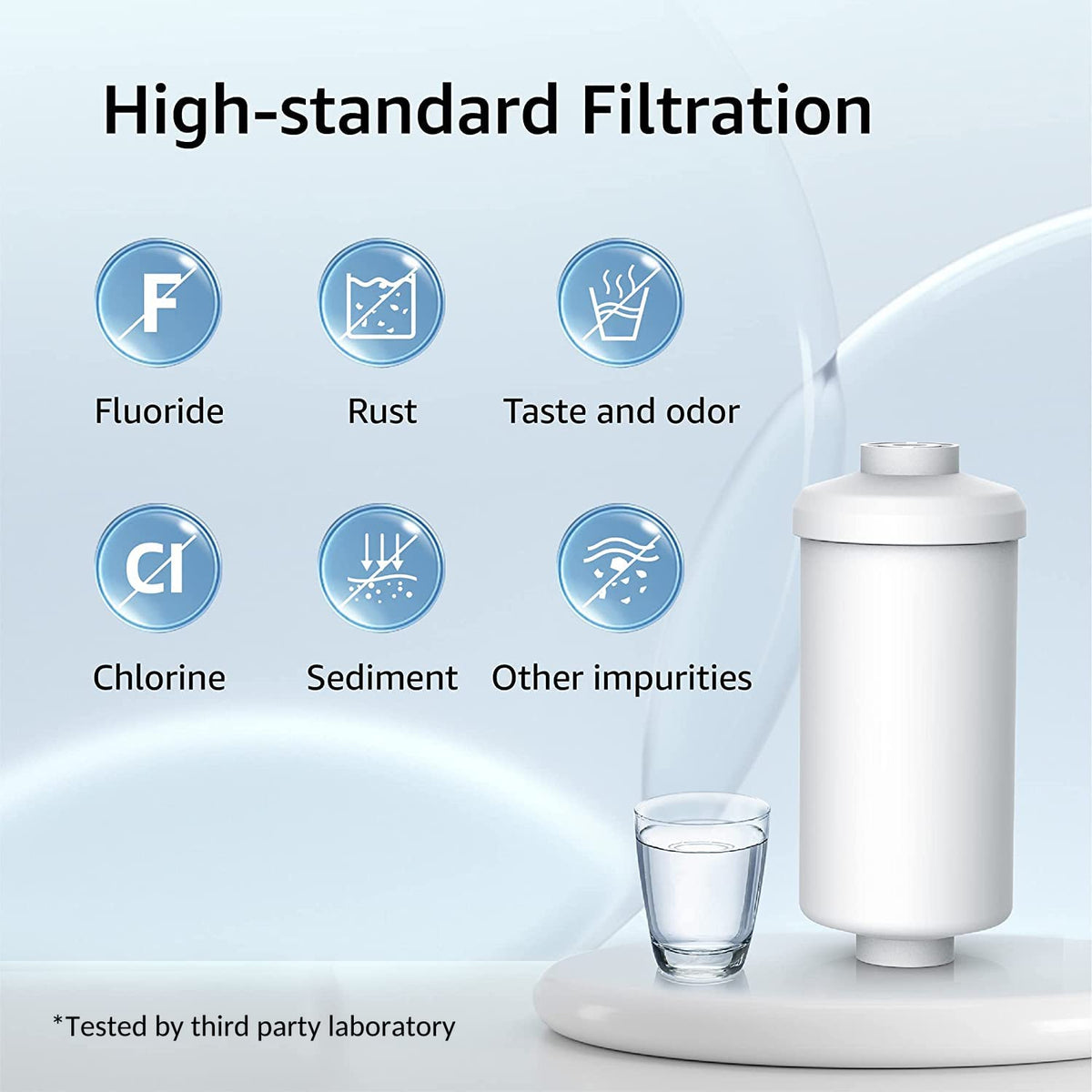 | Product Benefits | Removes up to 99% of chlorine, heavy metals, sediment, and other impurities for cleaner, better-tasting water; Easy to use and replace with a precise design to prevent leakage; Certified to reduce lead and other contaminants See more |