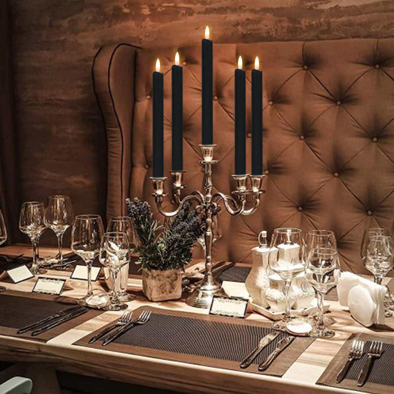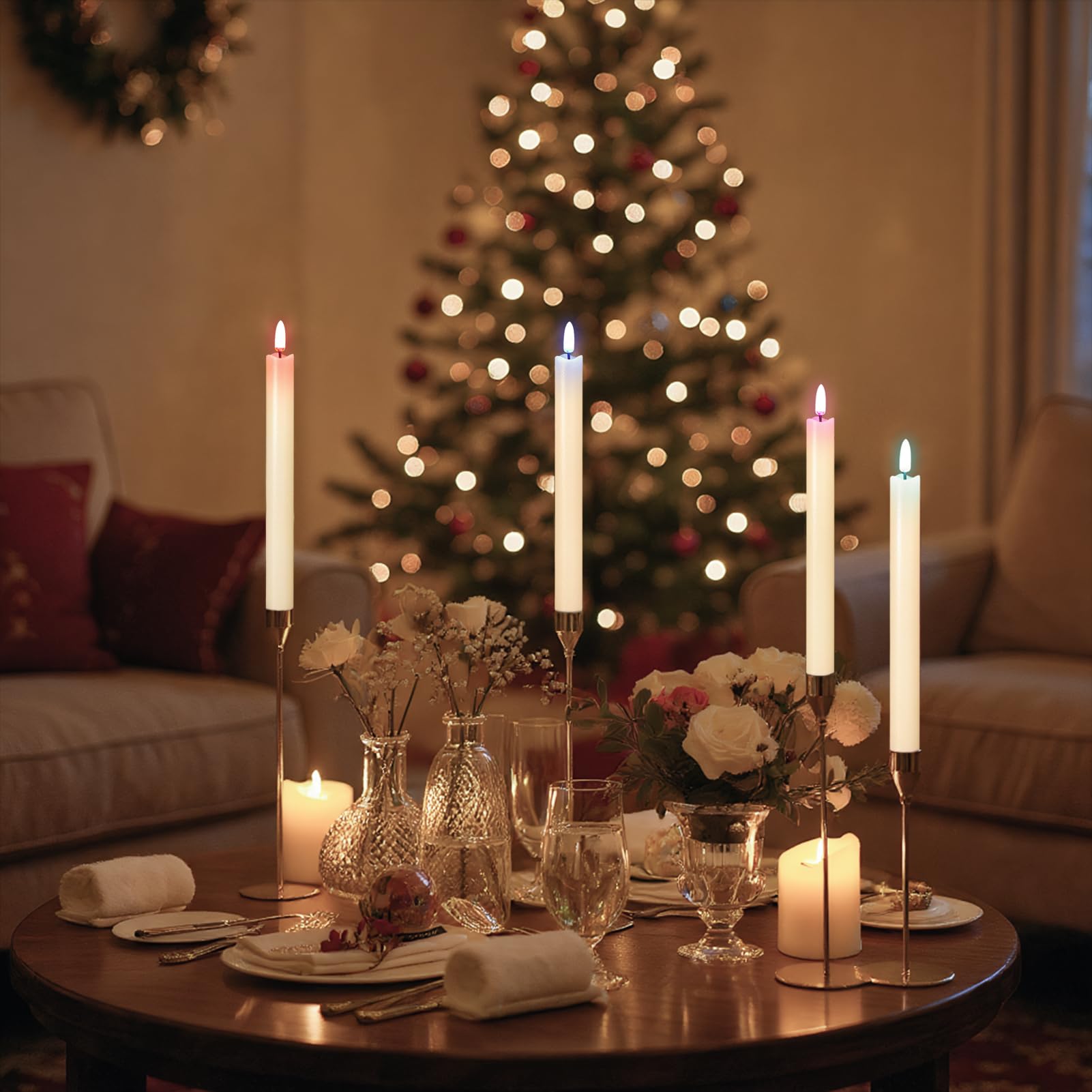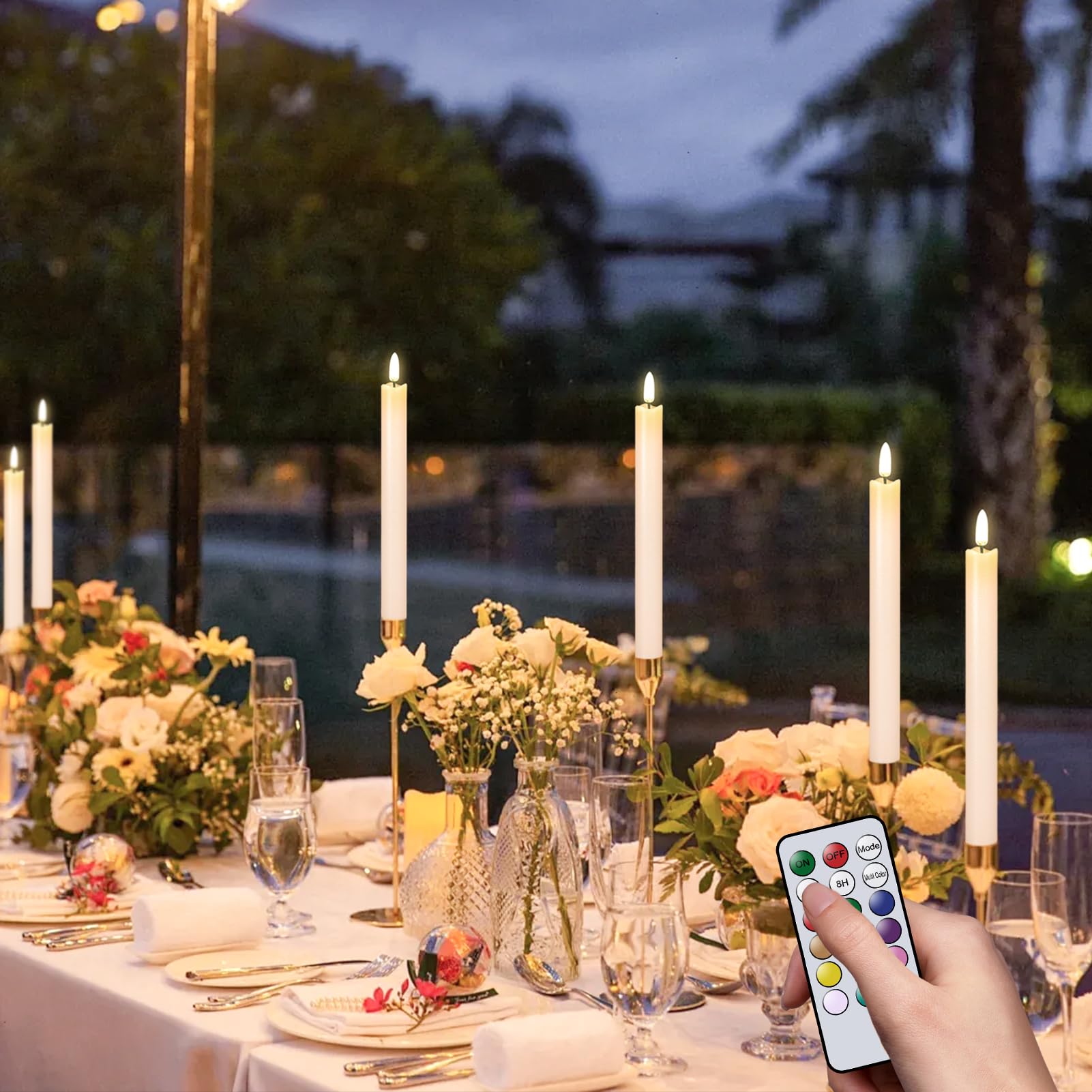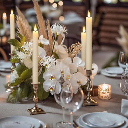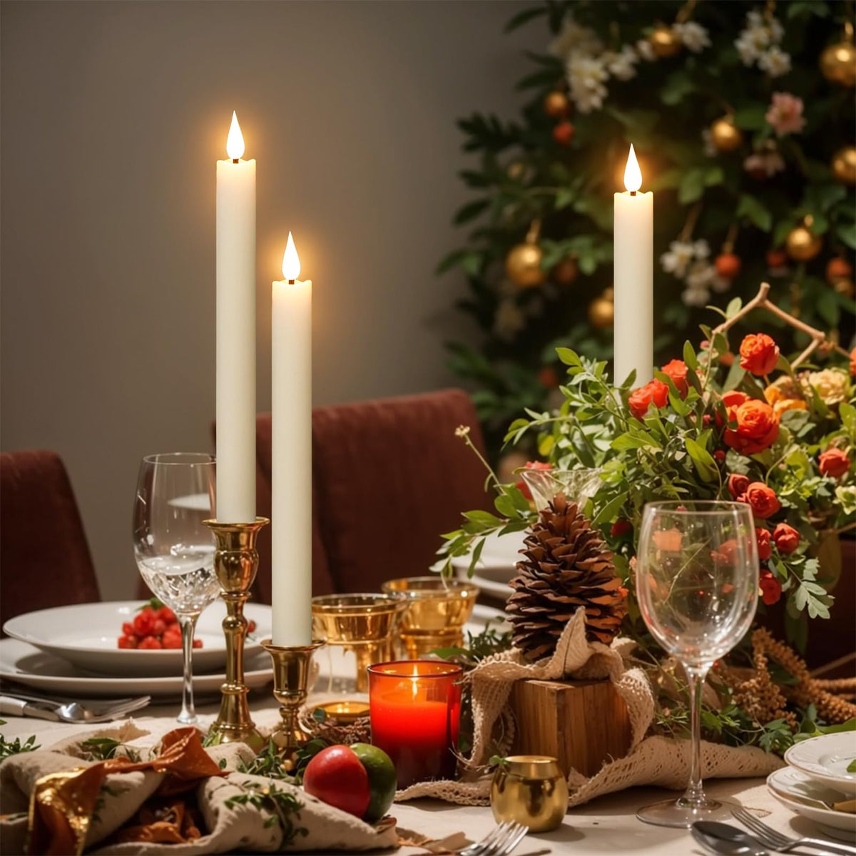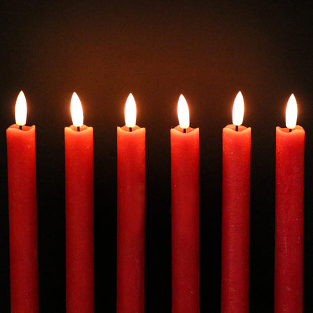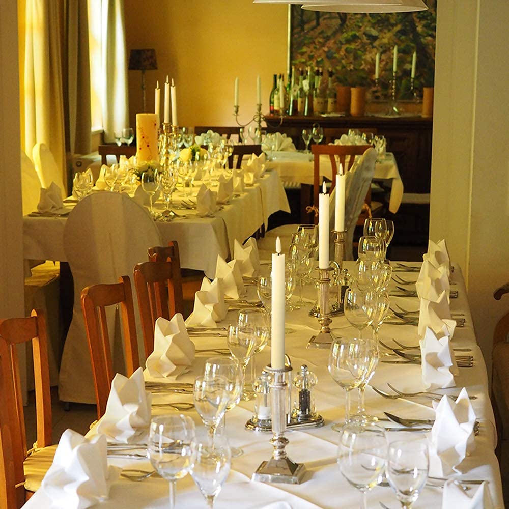 - EXCELLENT DESIGN: You don't need to use a candlestick to stand (you can also use it with a candlestick), These taper candles made form real wax and 3D Wick realistic flicker design, feels and looks like a real wax taper candle flame. Warm light glow creates a romantic atmosphere when use as dinner, party, wedding, birthday, Christmas home decoration