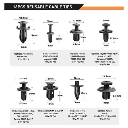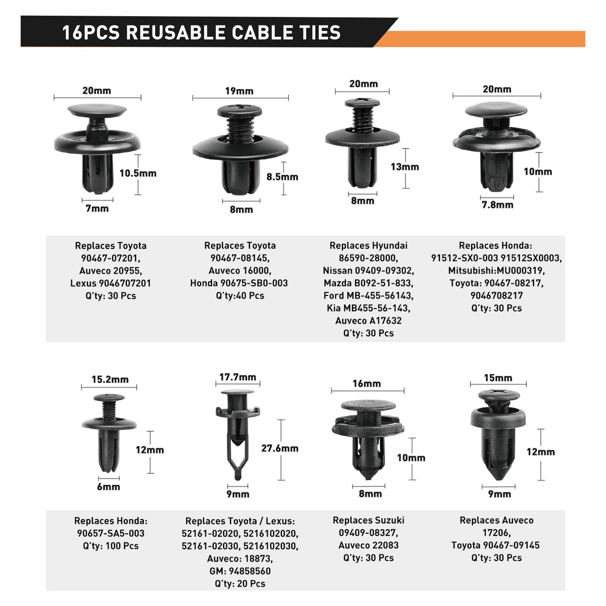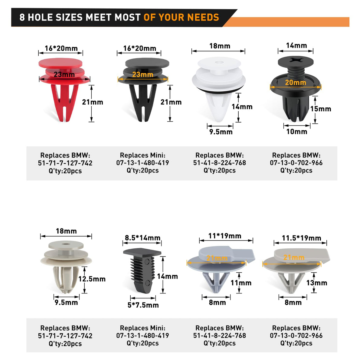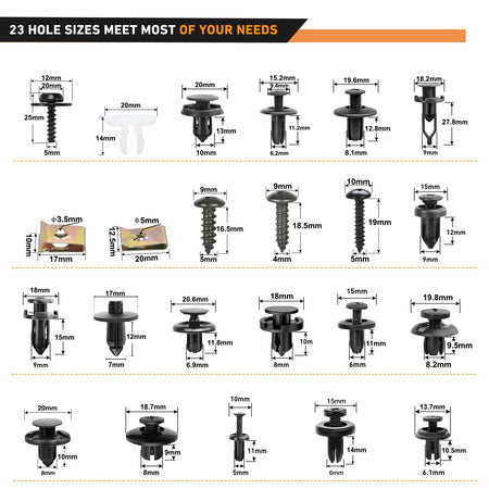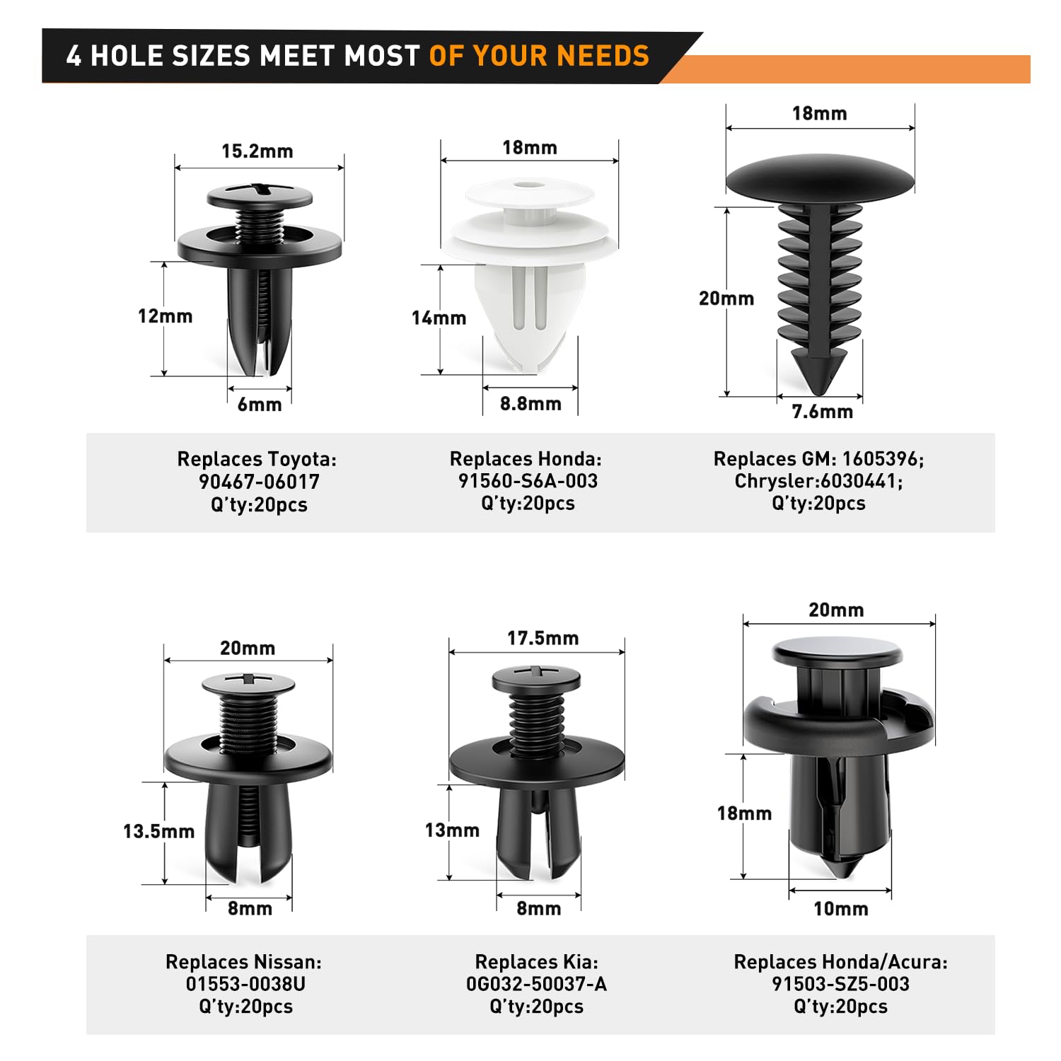 - MOST COMMON SIZES - Don not worry about lost or damaged body fasteners. All the necessary retainers for exact replacement of old and broken retainer.