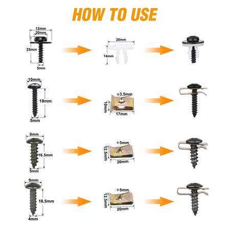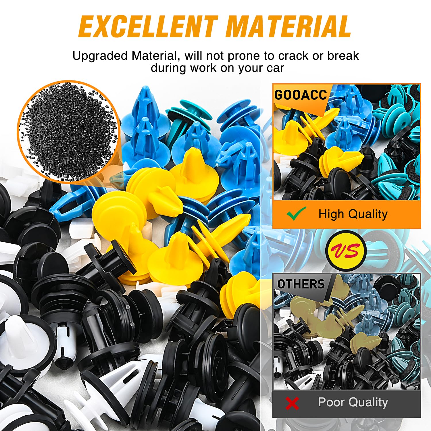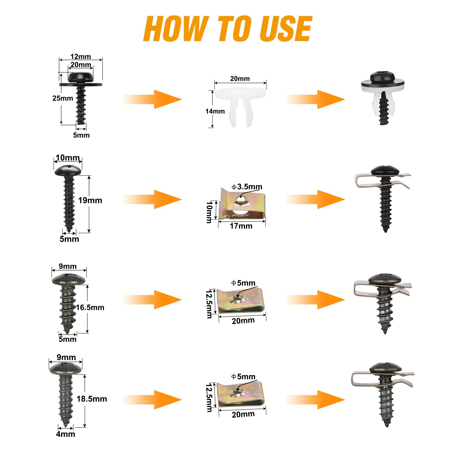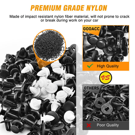 - SAVE TIME AND MONEY - You can find 200PCS automotive push type retainer kit and no need to go to a auto parts store to look for different fasteners.