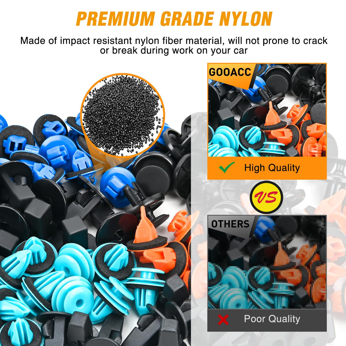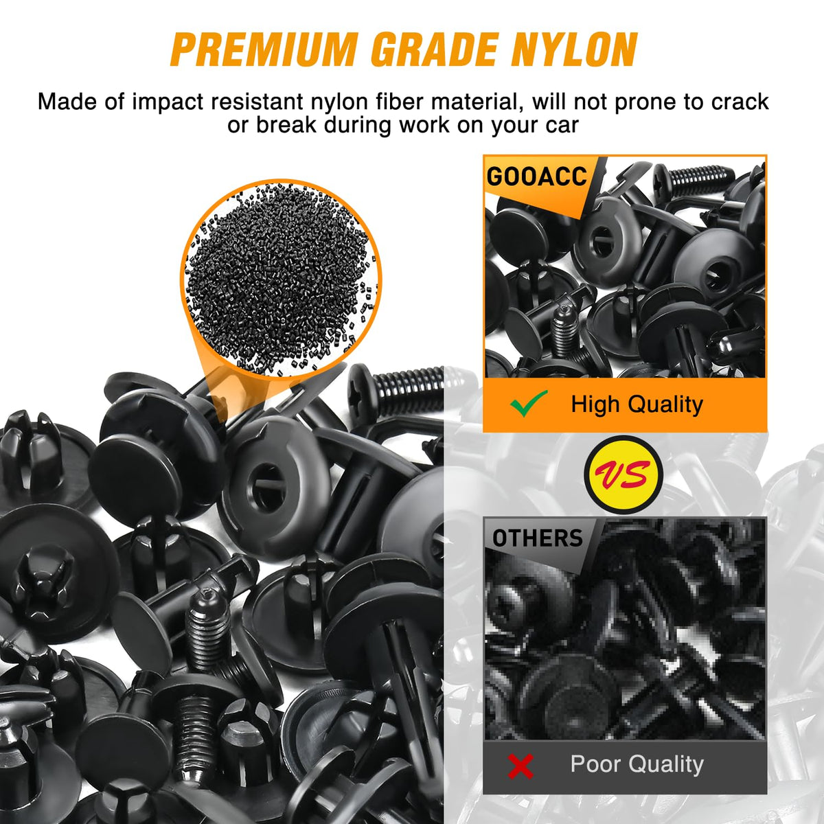 GOOACC Universal Plastic Fender Clips,200 Pcs Push Bumper Fastener Rivet Clips with 6 Size Auto Body Retainer Clips Bumpers,Car Fender Replacement for GM, Ford & Ch
