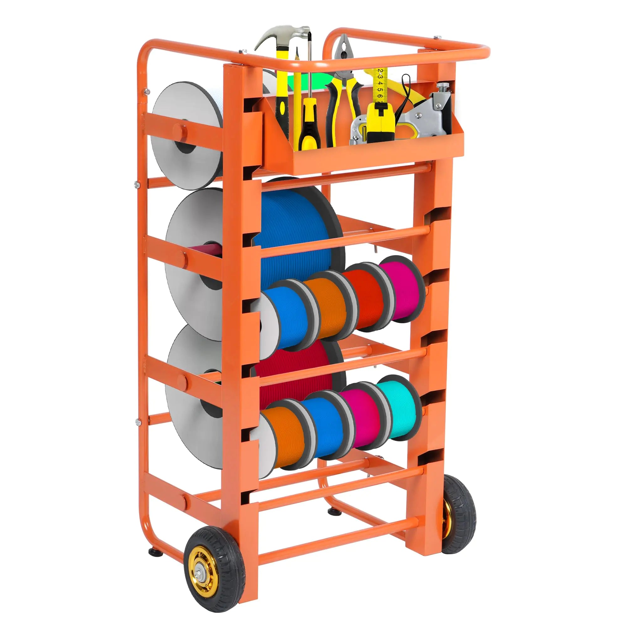 ikare Wire Spool Rack Cable Caddy Heavy Duty Multi-Spool Wire Rack Dispenser with Wheel Electrical Wire Spool Holder with Storage Tray for Wiring Storage and Electrical Industrial 300 lbs Capacity