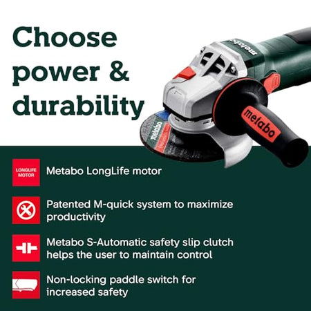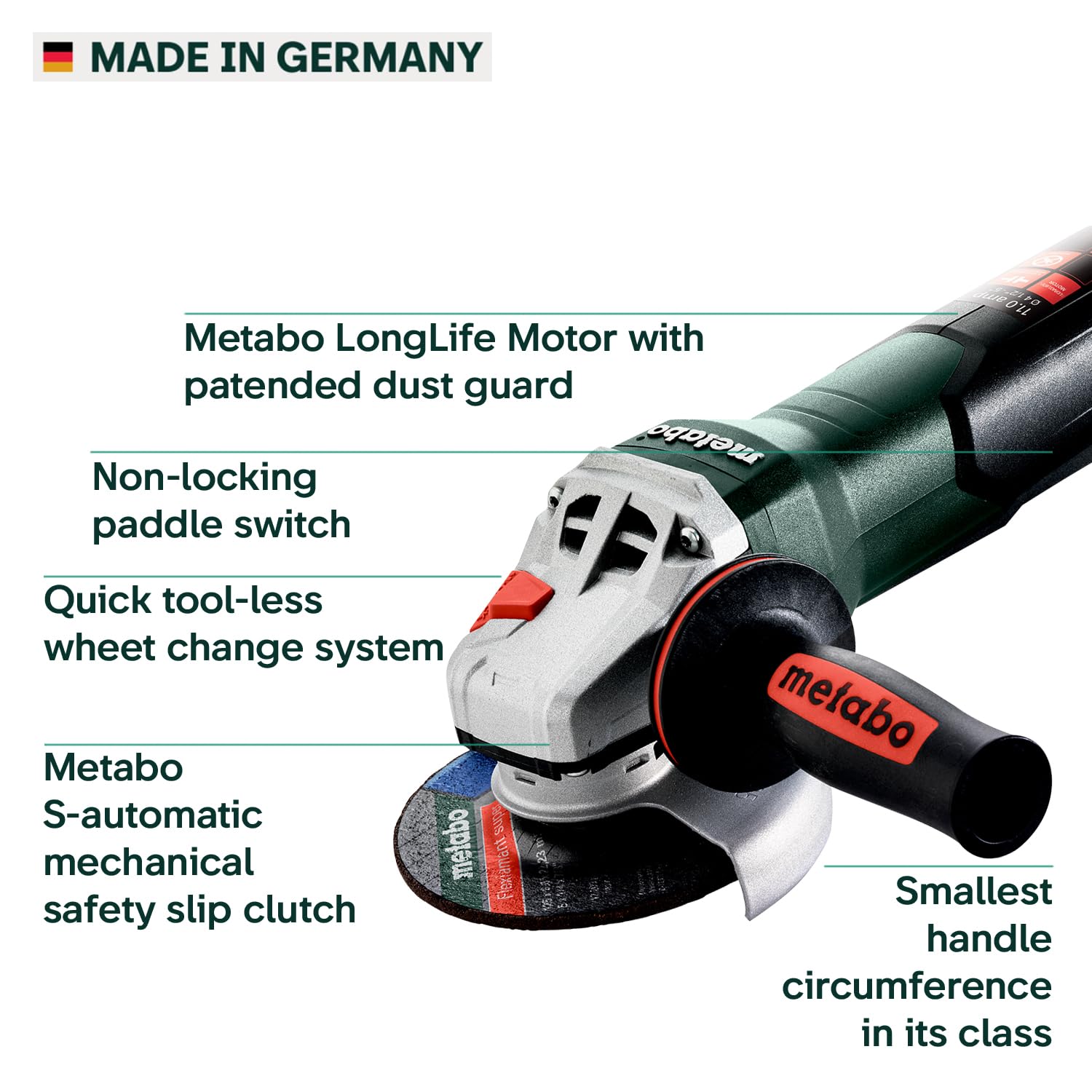 Metabo 4-1/2-5-Inch Angle Grinder, 11 Amp, 11,000 RPM, Non-Locking Paddle Switch, Made in Germany, WP 11-125 Quick, 603624420, Green