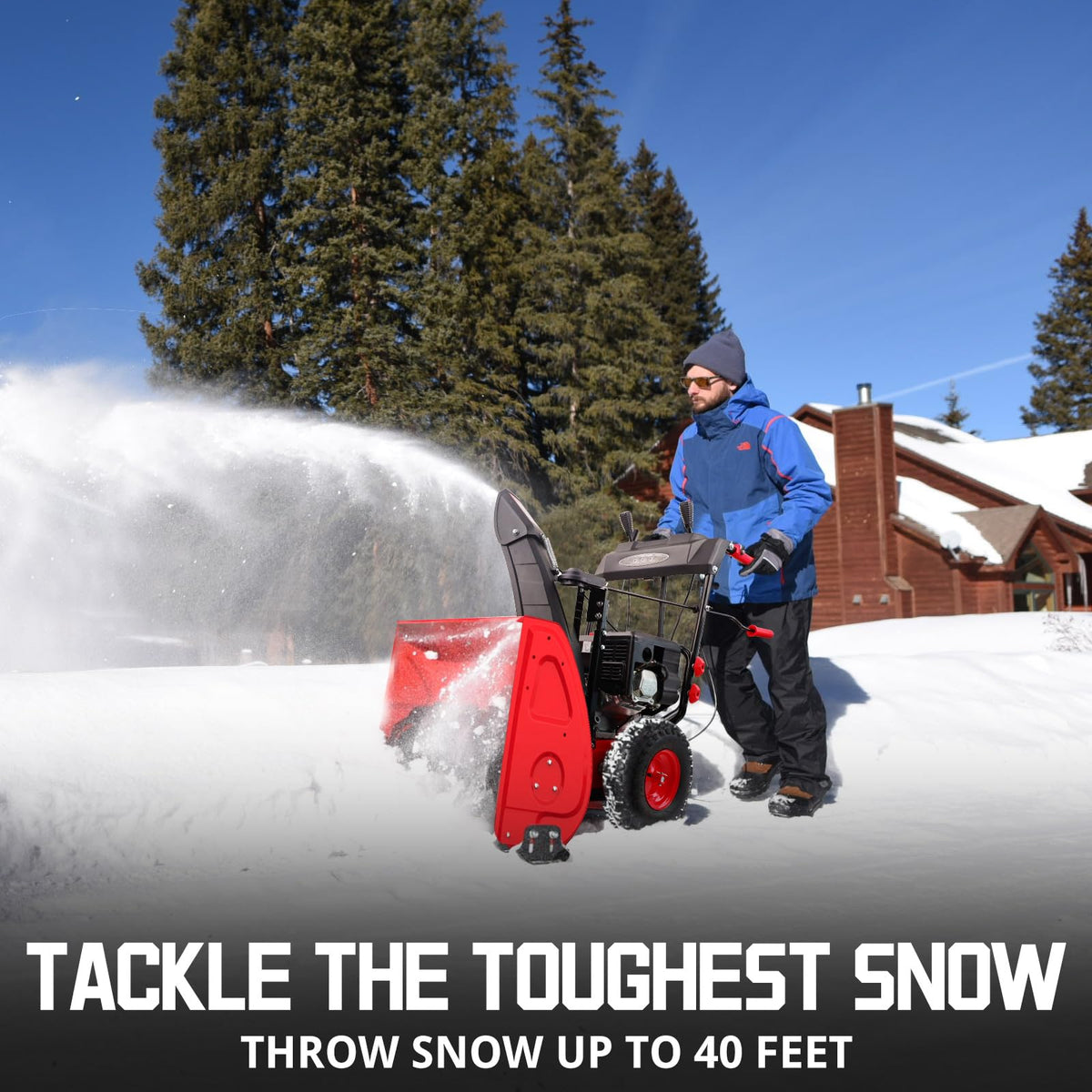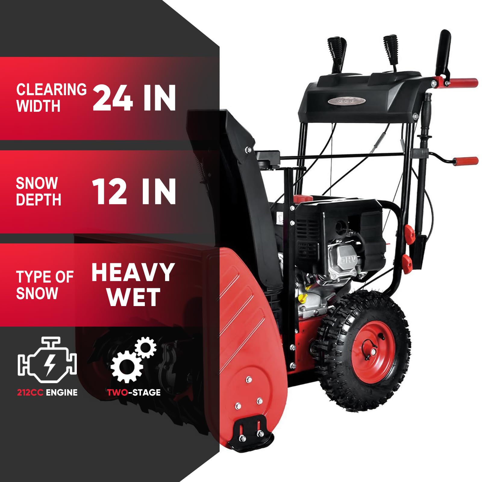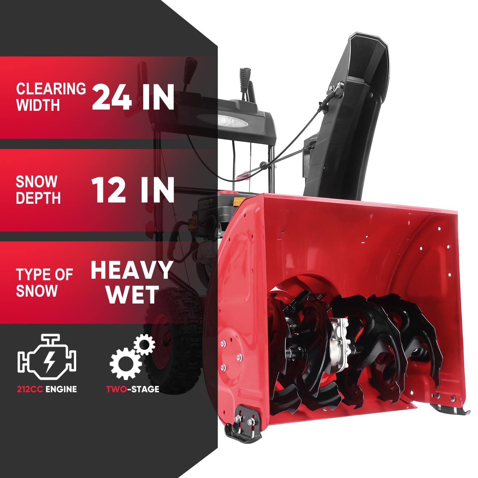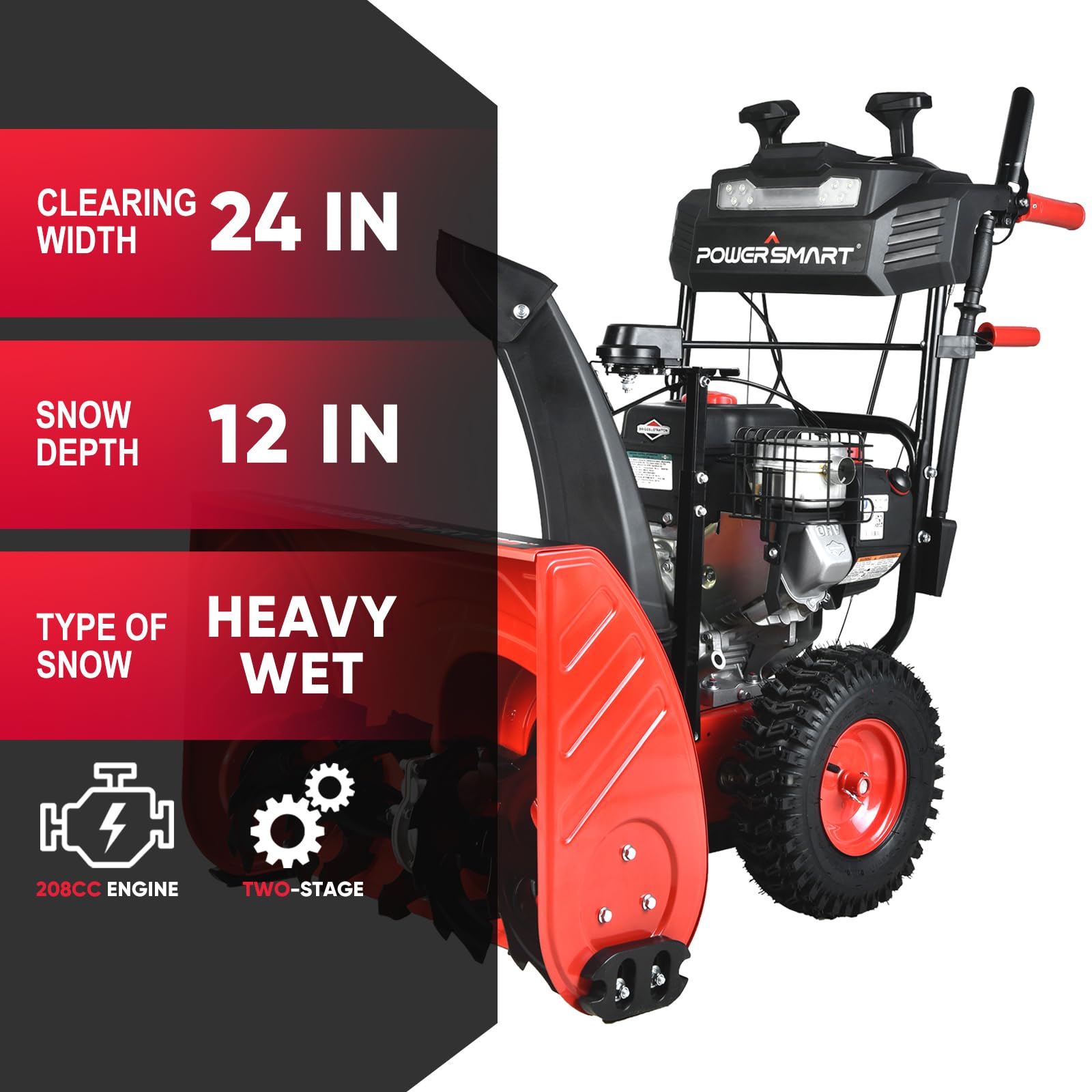 PowerSmart Gas Snow Blower 24-Inch 2-Stage Self-Propelled 212cc Engine Gas Powered with Electric Start, LED Light