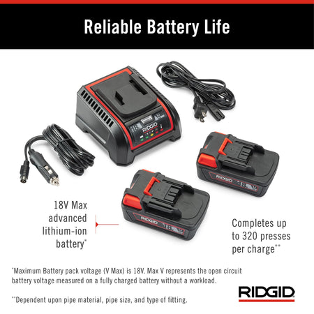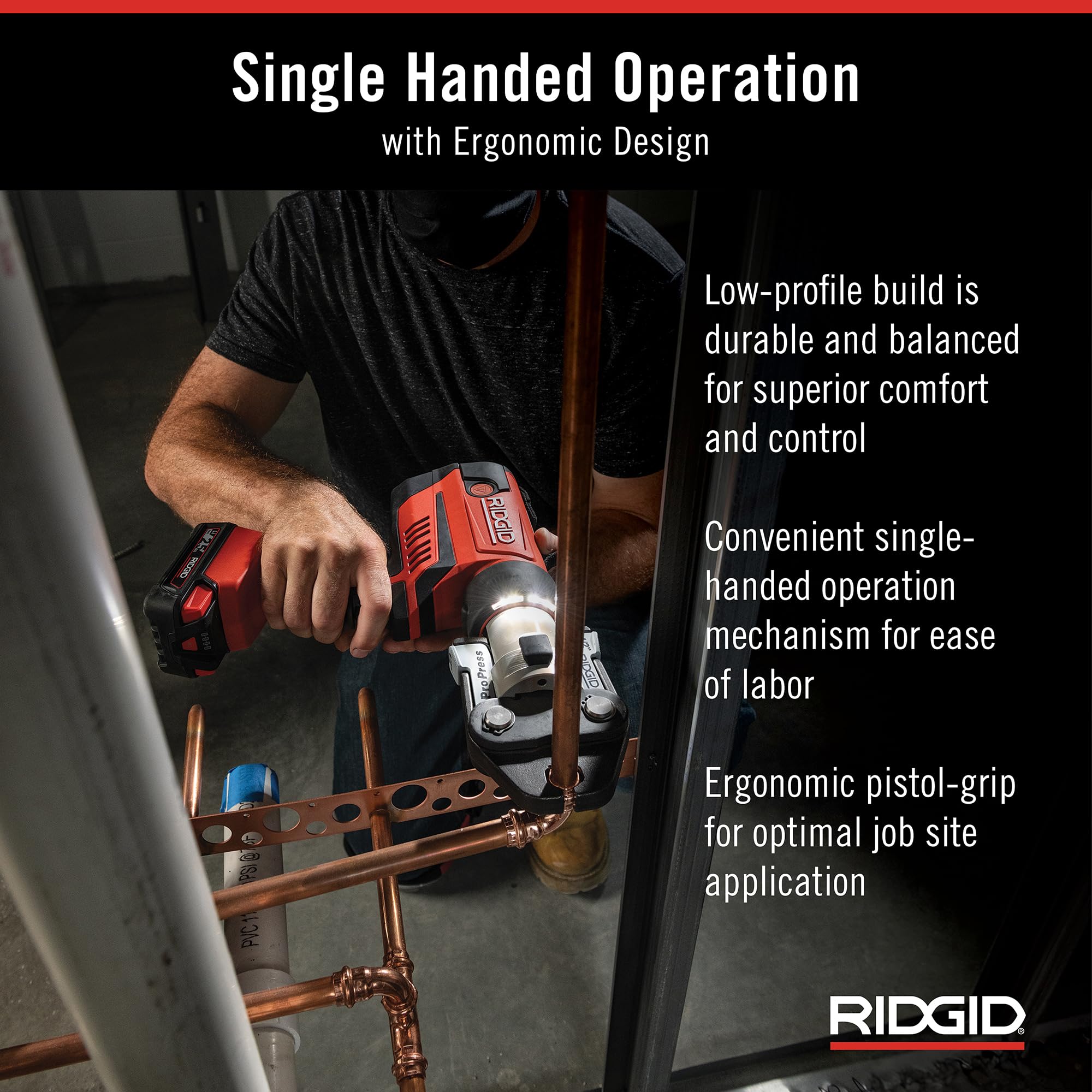 - PROPRESS PRESSING TOOL: The only press tool compatible with all RIDGID Standard Series jaws, rings, actuators, and attachments; kit includes 4 ProPress Jaws (1/2" to 2"), an 18-volt battery, charger, and a rugged carrying case
