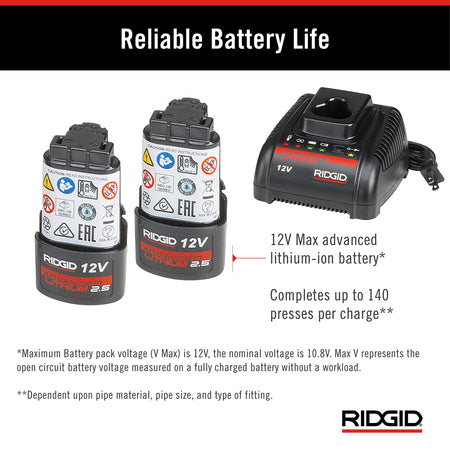 - LONG-LASTING POWER: Brushless motor is capable of over 60,000 press cycles with no scheduled maintenance required, and the compact press tool completes up to 140 presses per charge with the powerful 12V Li-Ion Battery