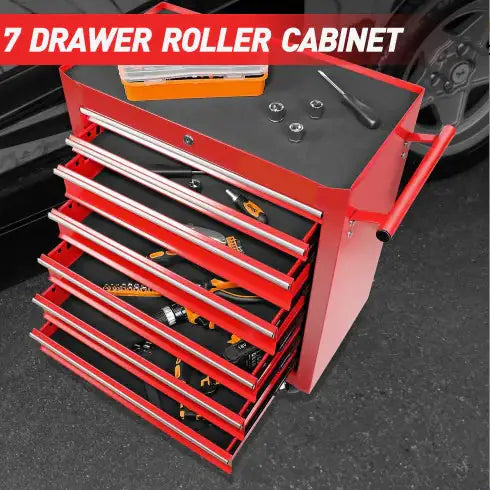 Rolling Tool Chest With 7-Drawer Tool Box With Wheels Multifunctional Tool Cart Mechanic Tool Storage Cabinet For Garage, Warehouse, Workshop, Repair Shop