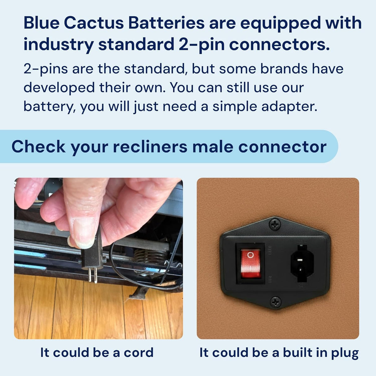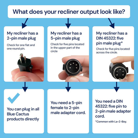 - Connector Compatibility: Tailored for standard 2-pin furniture connectors and specifically compatible with Pride Mobility, OKIN, Cheers (Man Wah Group) & Limoss. It's crucial to verify your furniture's input before purchasingβmore information is available in our detailed pictures