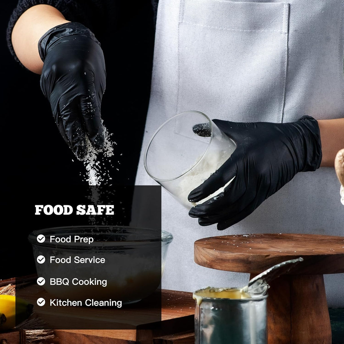 TitanFlex Disposable Nitrile Exam Gloves, 6-mil, Black, Heavy Duty, Latex Free, Food Safe for Cooking & Food Prep