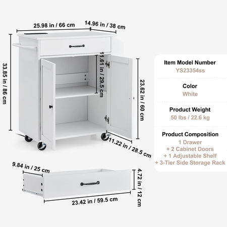 - Versatile Functionality: This white kitchen island is an innovative and efficient solution for smaller kitchens or dining spaces, maximizing the use of your room. It can also be used as a kitchen island, bar cart, or mobile coffee station. In addition, it is easy to install with suitable accessories and installation videos.