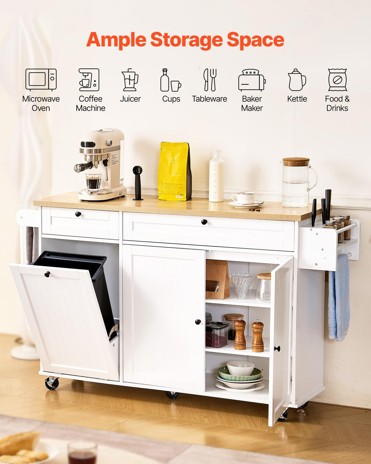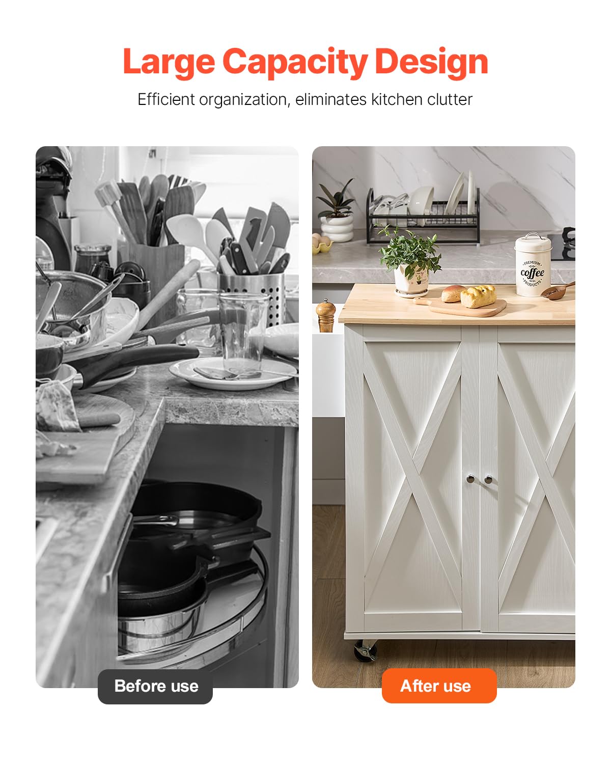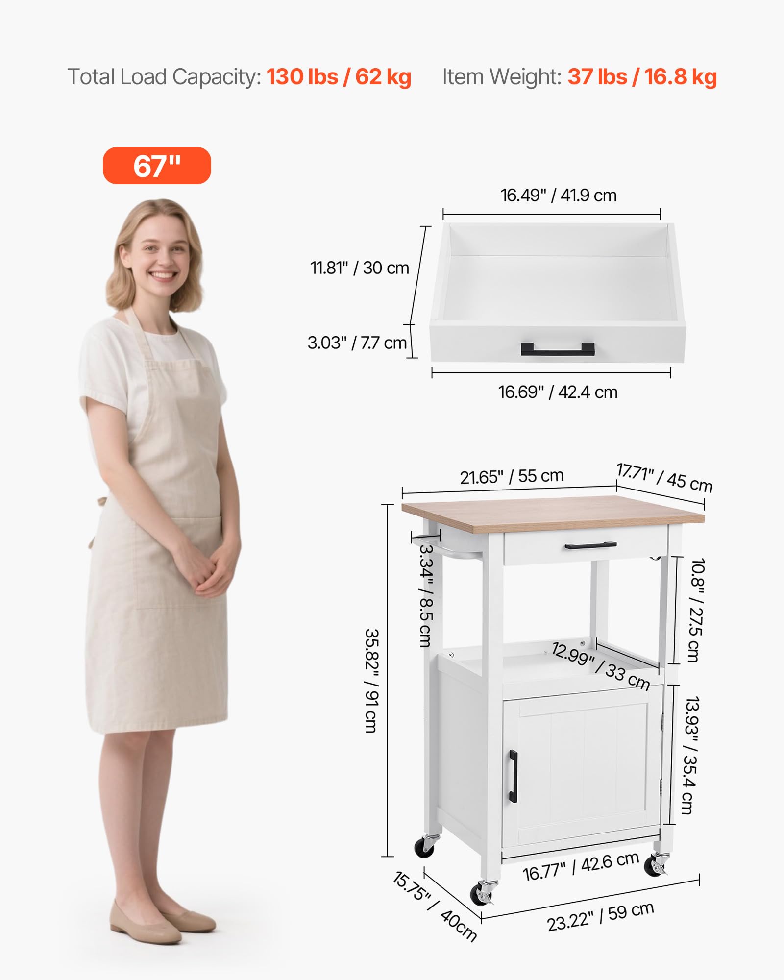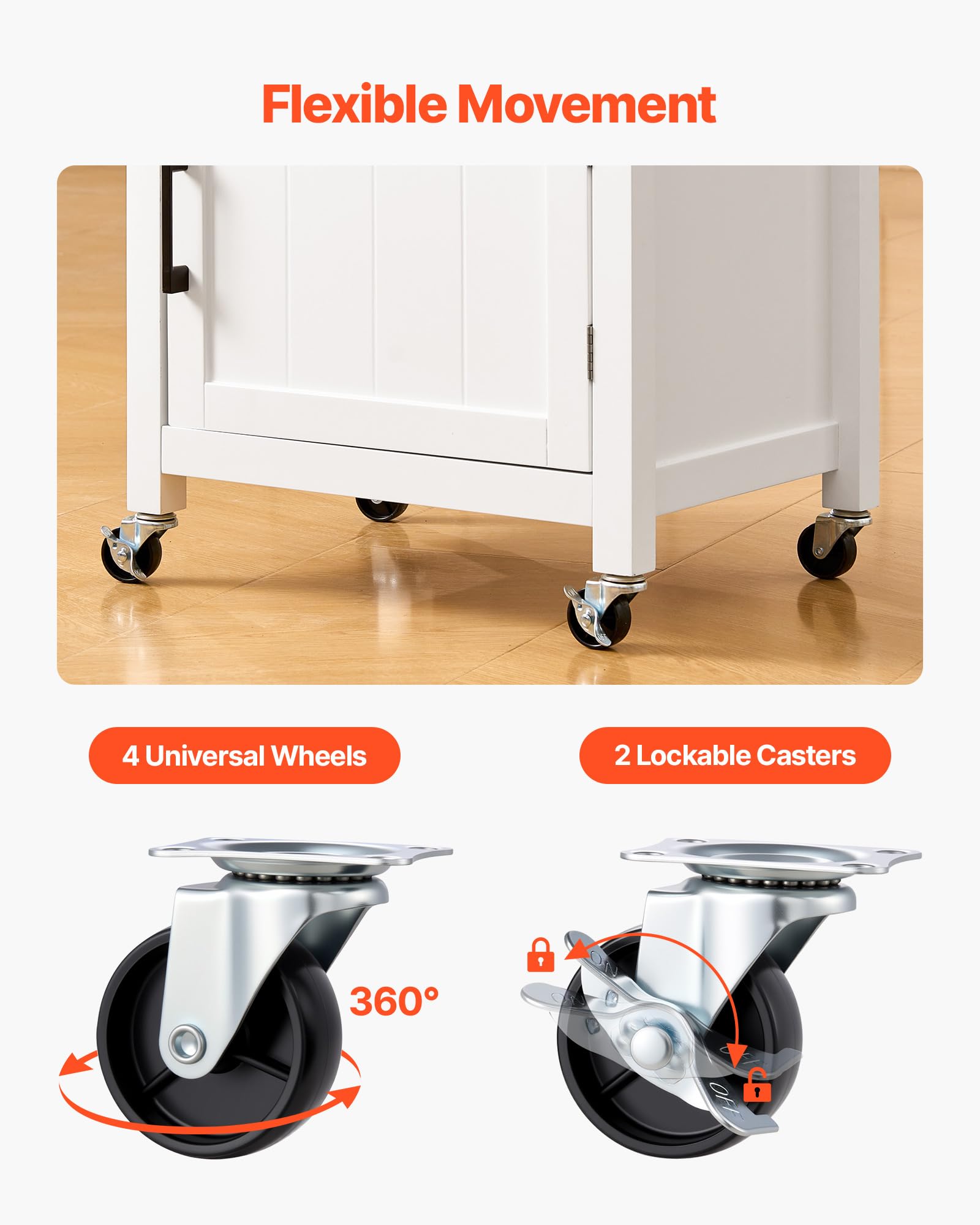 VEVOR Kitchen Island Cart with Solid Wood Top, 35.4" Width Mobile Carts with Storage Cabinet, Rolling Kitchen Table with Spice Rack, Towel Rack, and Drawer, Portable Islands on Wheels, White