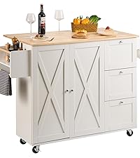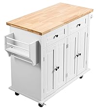 - Convenient Storage: The kitchen island with storage provides ample storage space with its drawers, cabinets, and racks, making it easy to keep your kitchen organized. Drawer for storing utensils and dinnerware; Spice rack and towel holder for added convenience; Cabinet for accessing your microwave, toaster, and other small appliances; Doors keep your space tidy and clean.