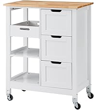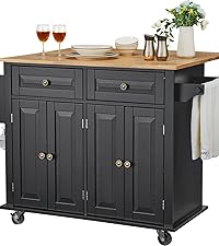 - Lockable Wheels for Mobility: Its four swivel casters can be easily moved around the kitchen, making it convenient to use wherever you need it. If you want to keep island stationery, these lockable casters give you the option. You can use the towel rack as a handle to help you move easily.