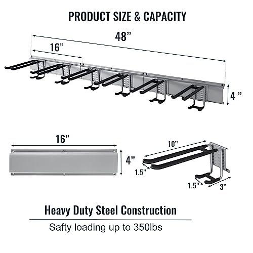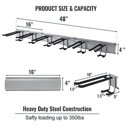 - HEAVY DUTY STEEL & SAFETY : Garage Storage rack can totally hold up to about 350 lb , Garden tool wall mount storage rack is made of high-strength steel for sturdy and strong organization.