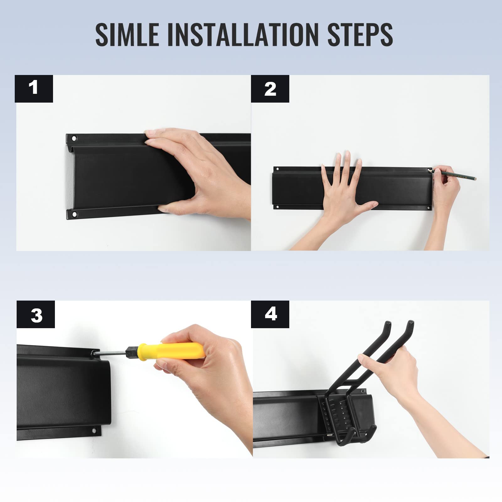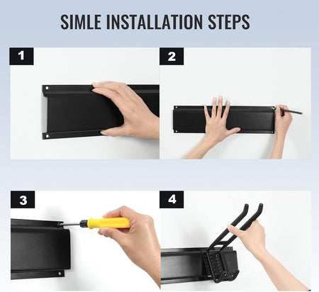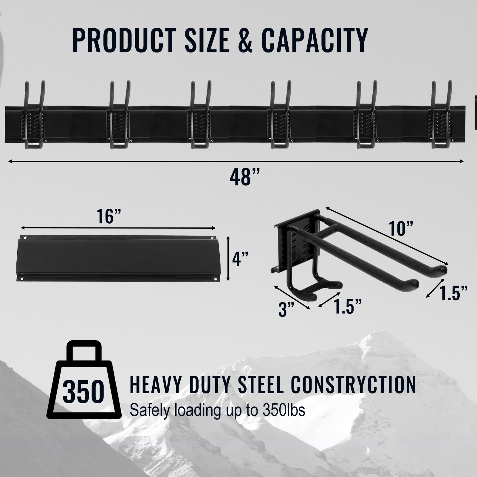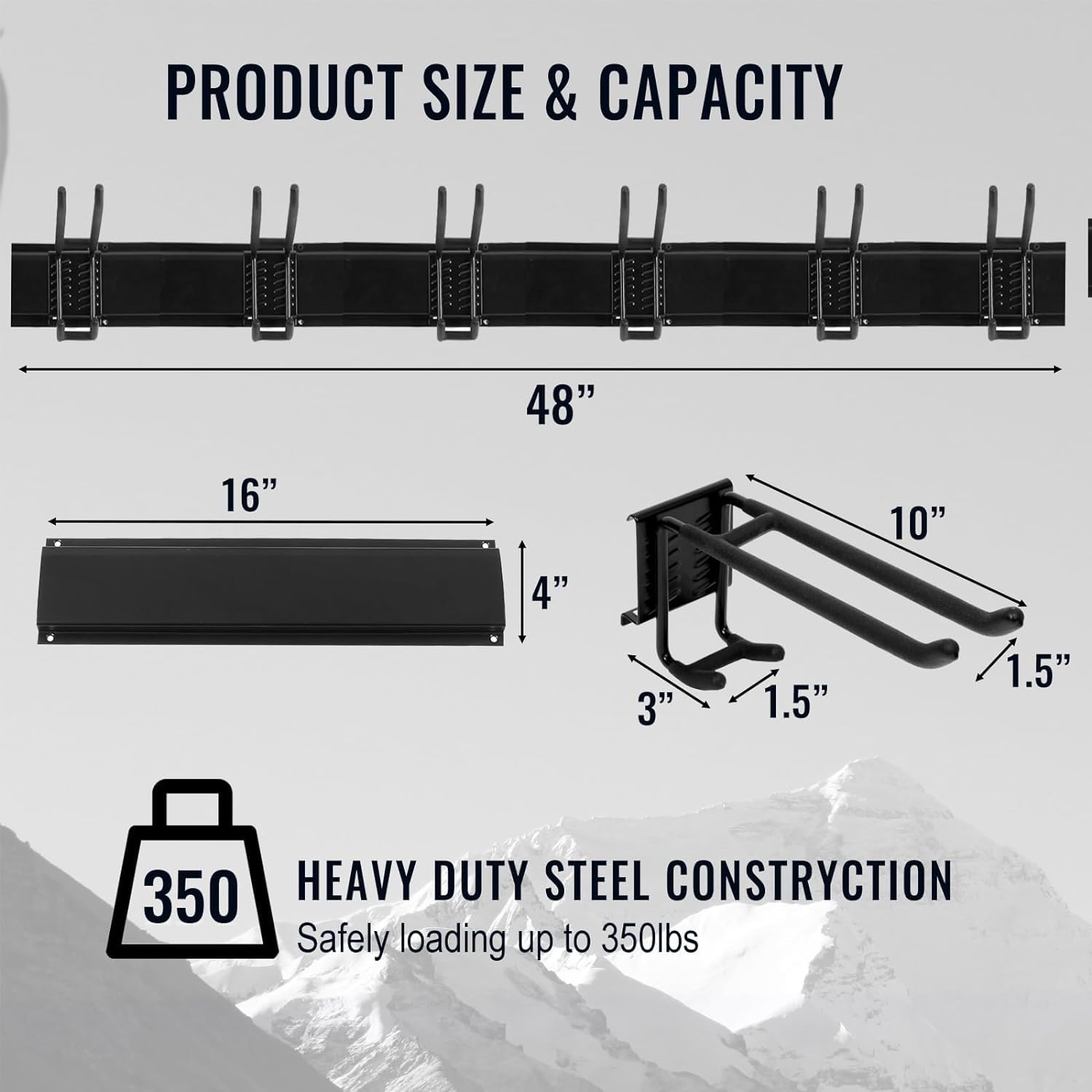 - EASY TO RELOCATER & ADJUSTABLE: The Garage Storage system with 3pcs Steel wall racks (16 inch), 6pcs Double Hooks (10 inch), Garage hooks can be easily repositioned anywhere on tracks of the panel when storage needs change. And fast wall-mount hooks can install in a snap.