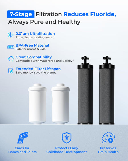 Waterdrop NSF/ANSI 42&372 Certified Water Filter, Replacement for Berkey® BB9-2® Black Filters, ProOne® or Alexapure® Gravity Water Filter System and Waterdrop King Tank Series, (Pack of 2)